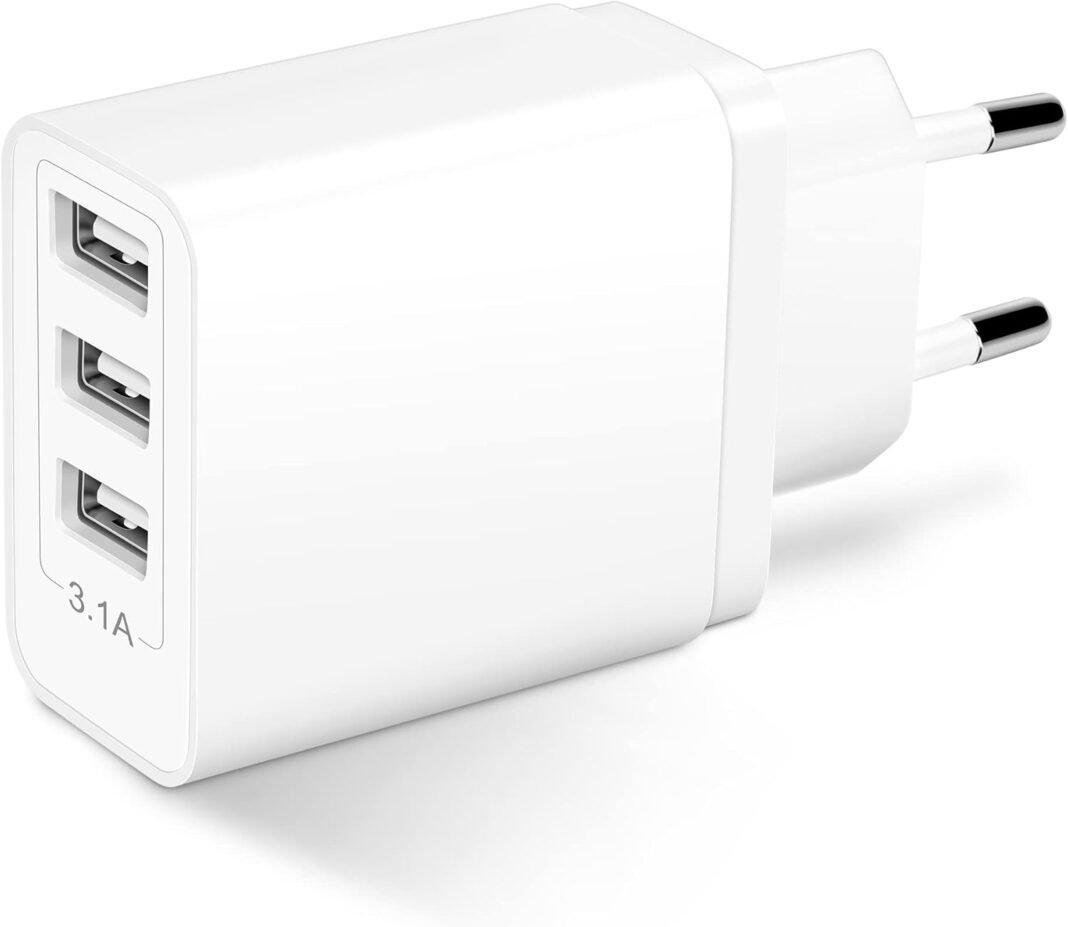 Cargador USB Múltiple, Enchufe 5V-3.1A/2A/1A con 3 Puertos 15.5W – Adaptador Appropriate con iPhone, Samsung, Tabletas, Lector Electrónico, Consola de Juegos, Auriculares, Lámpara