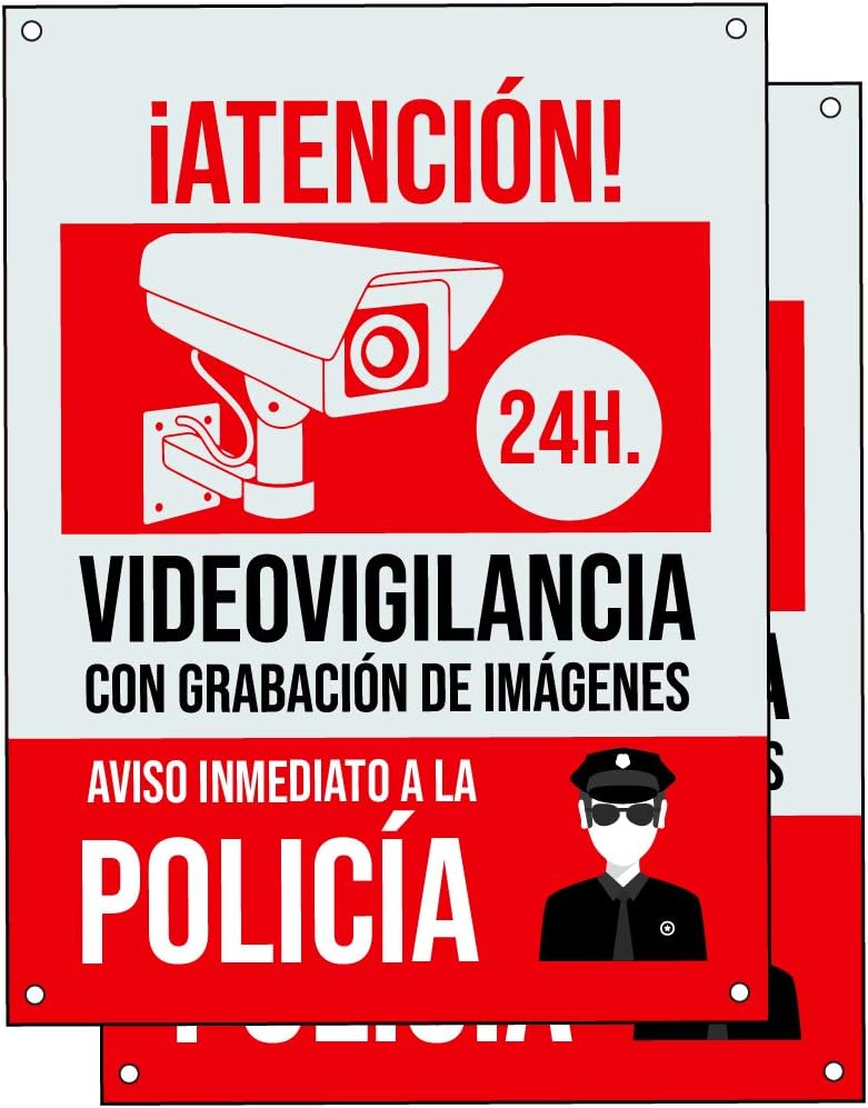 ¡Calidad de Alemania! Apto para Uso en exteriores! El Diseño de la Placa de Videovigilancia Tiene una Visibilidad Óptima Gracias A Su Excelente Legibilidad Contoxo Negro Sobre Fondo Blanco y Rojo InteSo