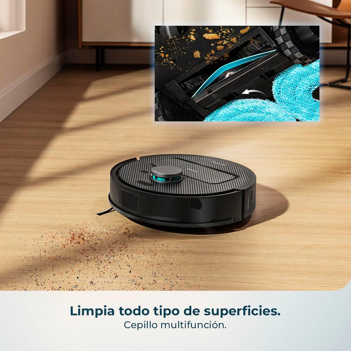 Navegación láser de alta precisión y mapeo interactivo: cree un mapa detallado de su hogar, garantizando una limpieza precisa y personalizada en cada rincón, sin importar la luz, con resultados rápidos, precisos y efectivos.