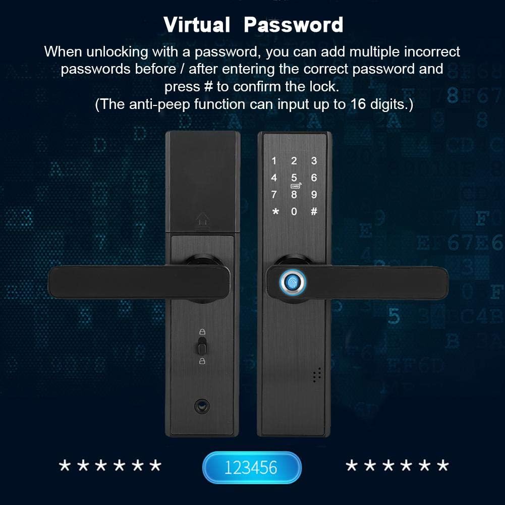 Cerradura de Puerta Inteligente, Cerradura de Puerta de Seguridad Electrónica Wifi Con Llave Mecánica para Función Tuya Pantalla Táctil Huella Digital Contraseña IC Tarjeta de Aplicación, Estable Y