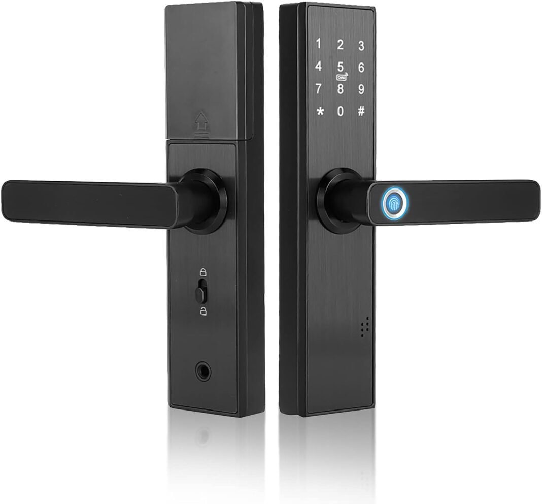 Cerradura de Puerta Inteligente, Cerradura de Puerta de Seguridad Electrónica Wifi Con Llave Mecánica para Función Tuya Pantalla Táctil Huella Digital Contraseña IC Tarjeta de Aplicación, Estable Y