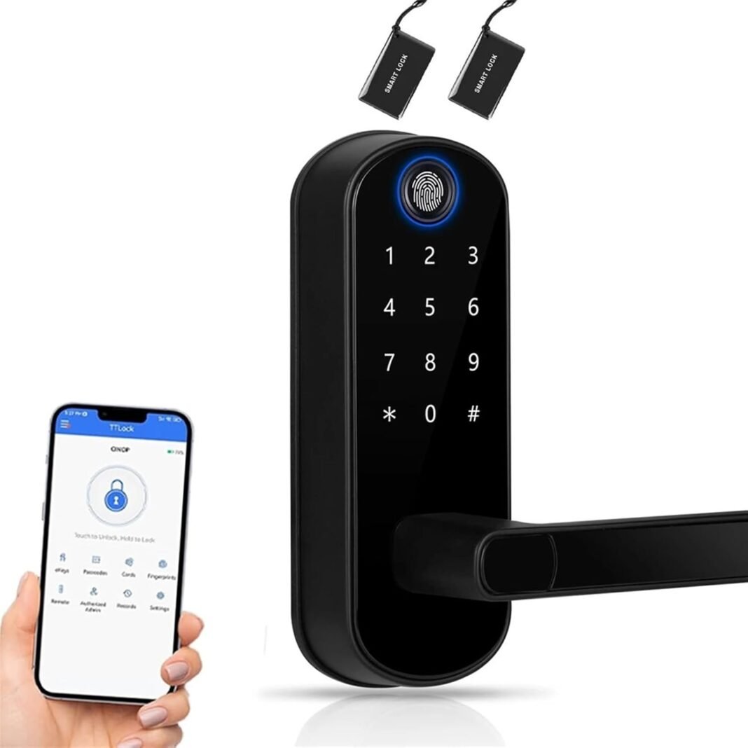 Métodos de desbloqueo versátiles: con esta cerradura de puerta inteligente con entrada sin llave, tiene múltiples opciones para desbloquear la puerta. Ya sea usando la APLICACIÓN, el reconocimiento de huellas dactilares, el ingreso de contraseña, el deslizamiento de una tarjeta o la clave tradicional, puede elegir el método que más le convenga. Disfrute de la flexibilidad y facilidad de acceso que ofrece este pomo de puerta avanzado