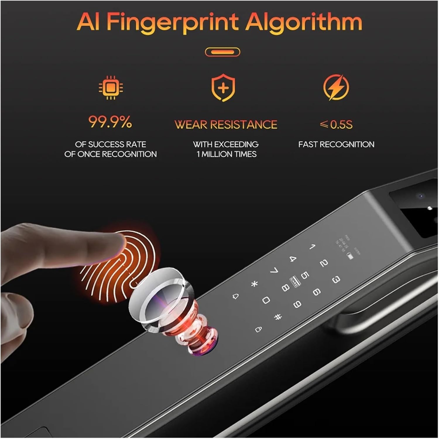 Esta Cerradura Inteligente Con Reconocimento Facial 3d Tiene un Diseño Avanzado Antreslizante y Antifuerza Bruta, Desbloqueo por Huella Dactilar Integra, Tarjeta ic, Contraseña Digital y Otras Múltiples Funciones de SeguriDad para Garantizar de Garantizar Que Propiny infringidos. Fuertos medidas de protección para proteger su puertas.