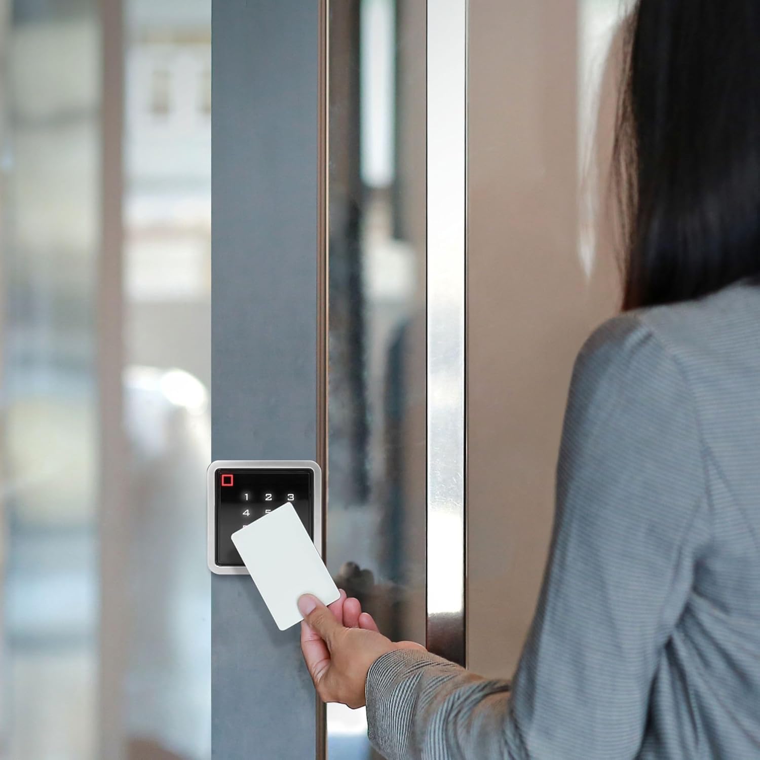 Uso versátil y dimensiones compactas: la cerradura está equipada con un relé 3A, lo que aumenta su versatilidad y permite conectarla a varios tipos de sistemas de puertas. Sus dimensiones compactas (86 x 86 x 20 mm) facilitan su instalación en muchos tipos de superficies de montaje sin alterar la estética del entorno.