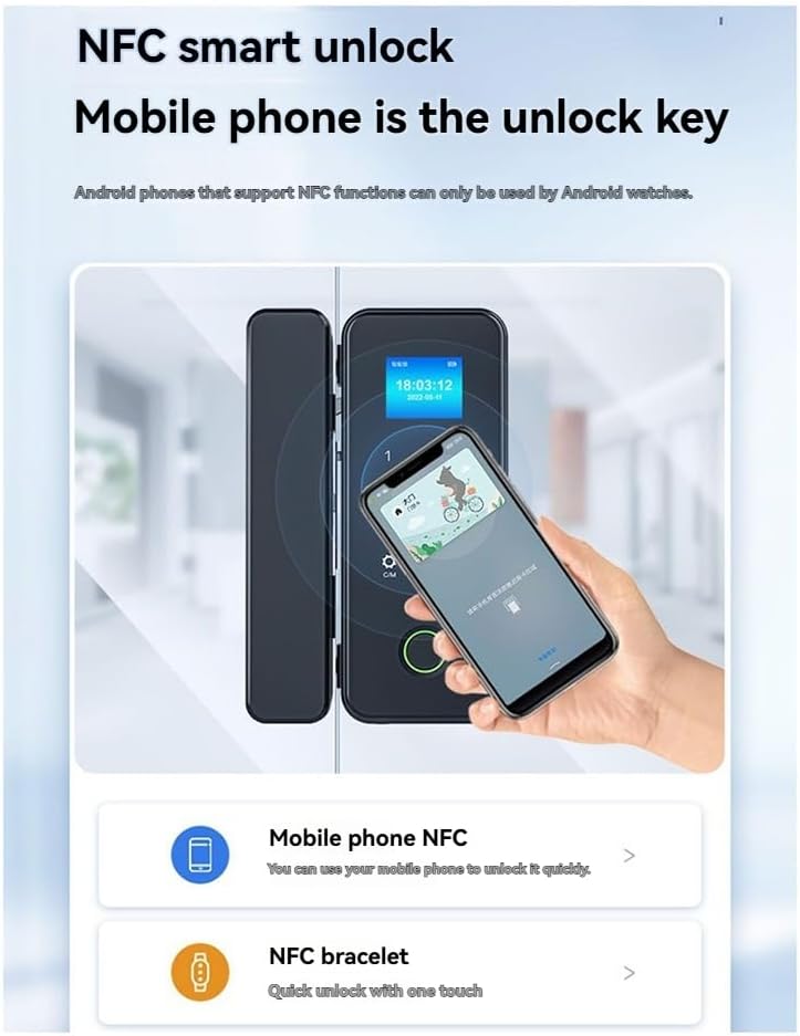 Desbloqueo inteligente NFC, el teléfono es la clave de desbloqueo (solo se puede usar en teléfonos Android y relojes Android que admitan la función NFC).