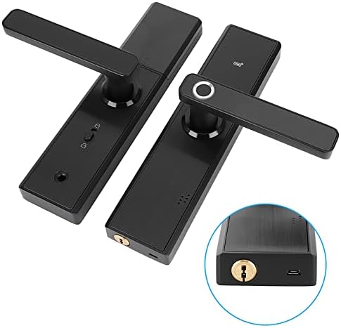Tipo de elemento: Cerradura de puerta inteligenteMaterial: aleación de zinc. Colour: como se muestra en las imágenes. Método de desbloqueo: huella digital, tarjeta IC, contraseña, llave mecánica, aplicación móvil. Alimentación: 4,5 V-6,5 V (pilas en seco 4 x AAA) (no incluidas). Corriente de descanso típica: <50uA (la duración de la batería puede superar un año).