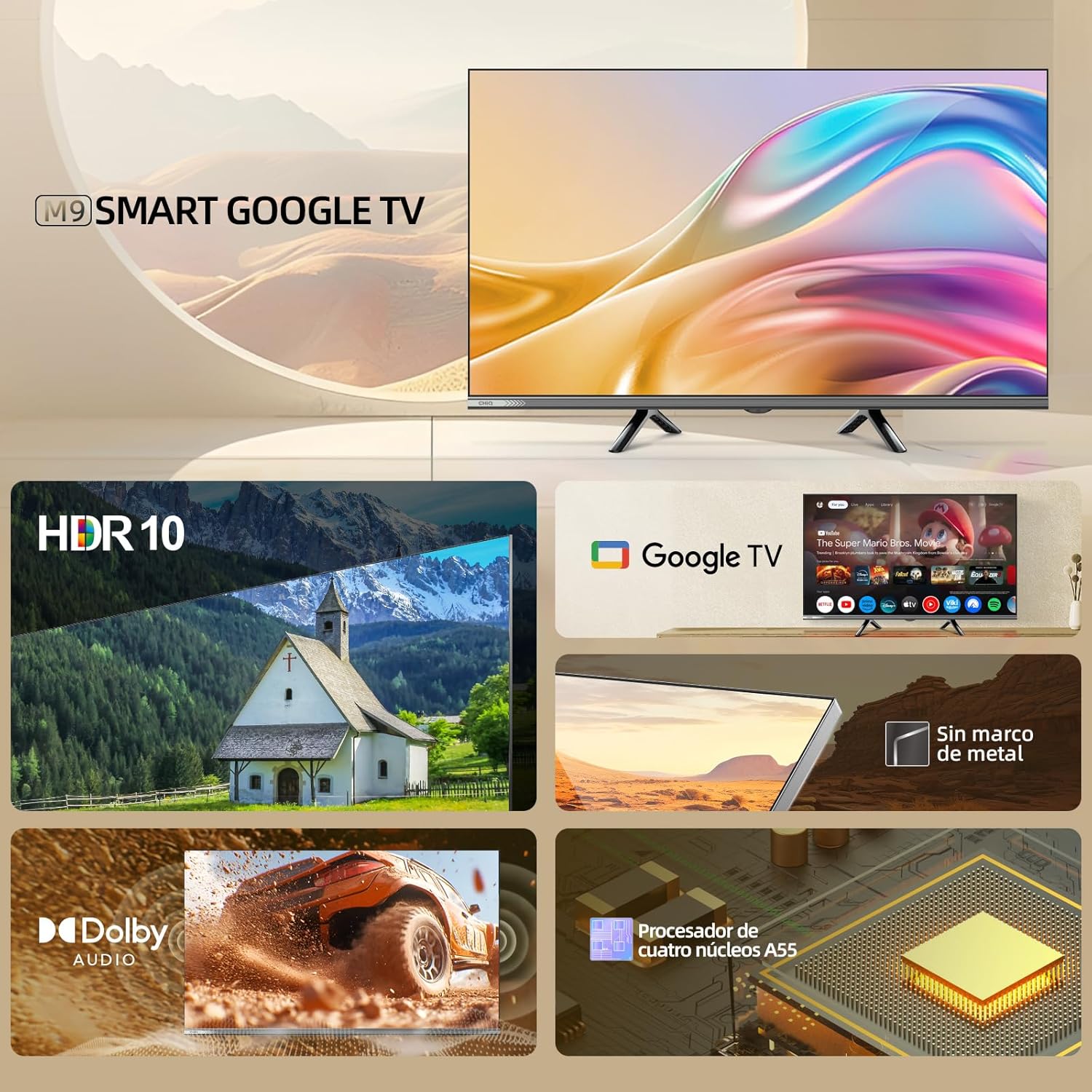 ✅ Management de voz conveniente. Con Google Assistant integrado, controla tu TV y dispositivos inteligentes con comandos de voz. Ajusta el volumen o encuentra programas fácilmente, mejorando tu experiencia de entretenimiento.