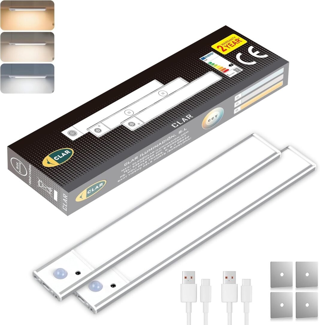 Clar – Luz Armario Sensor Movimento, Luz Led Armario, Luces Armarios Con Sensor Sen Cable, Luces LED Armario, Luces para Armarios Interiores, Luz LED Magnética Con sensor de Movimento, 30 cm (paquete 2)