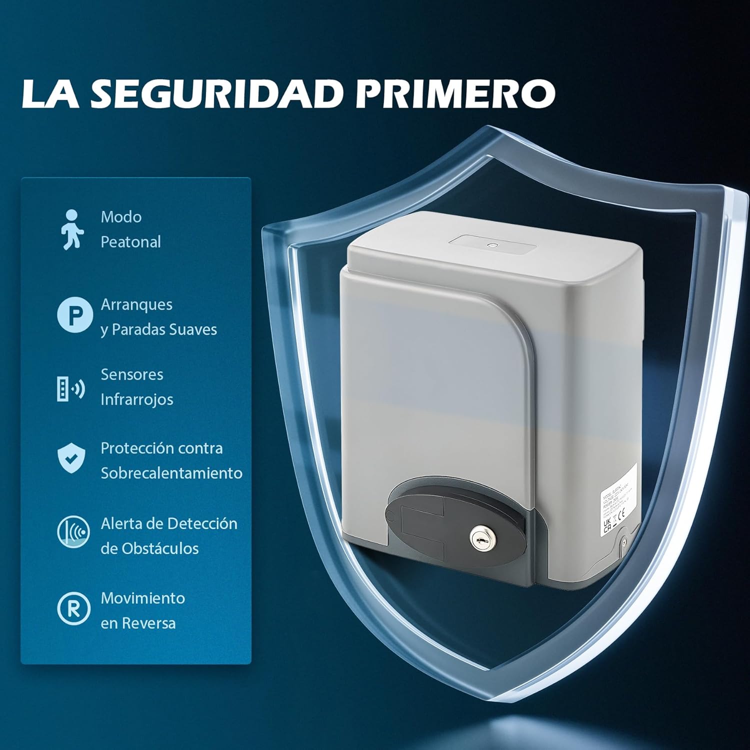 (MULTIMODO): Nuestro motor de puerta eléctrica proporciona modo para peatones, arranques y paradas suaves y protección contra sobrecalentamiento para garantizar un uso seguro. También emite un zumbido y responde deteniéndose y retrocediendo si los sensores infrarrojos detectan algún obstáculo.