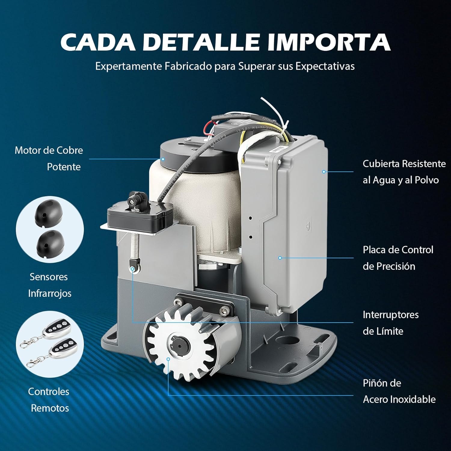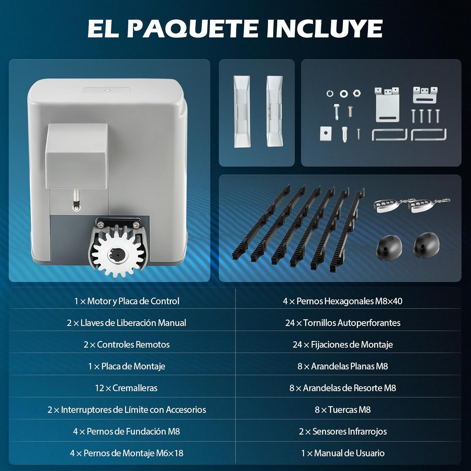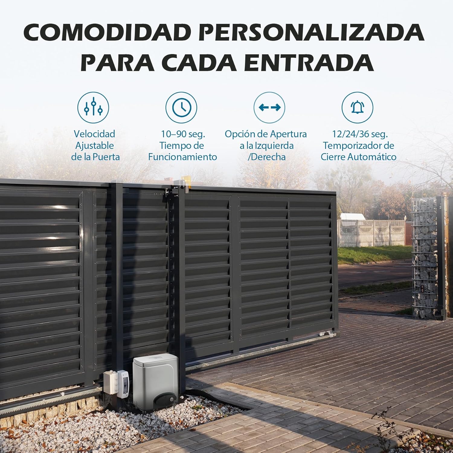 (INSTALACIÓN FÁCIL): Este motor portal corredera es fácil de instalar con todas las herramientas necesarias incluidas; una vez instalada, podrás disfrutar de su funcionamiento suave y silencioso gracias a las 12 cremalleras de nailon ligero.