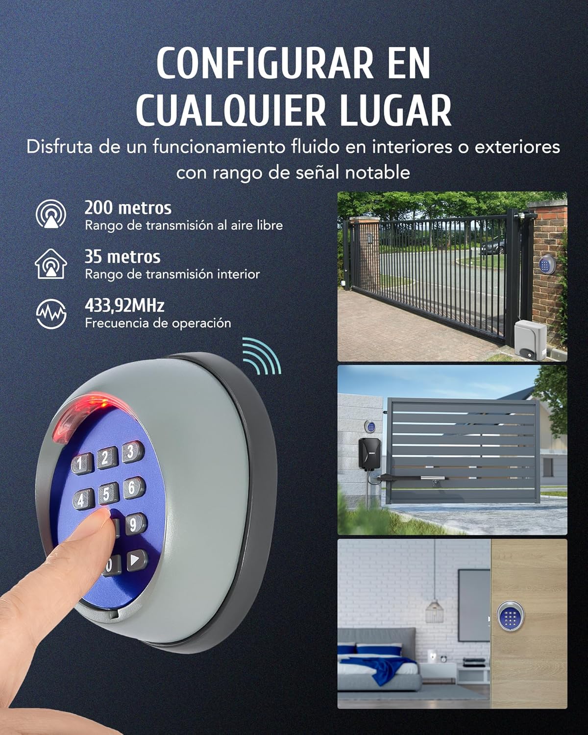 SEÑAL FUERTE: El alcance de transmisión de este teclado es de 200 metros en espacio abierto y 35 metros en interiores; su fuerte señal asegura que se conecte rápidamente a cualquier abridor de puertas CO-Z de 433.92 MHz.