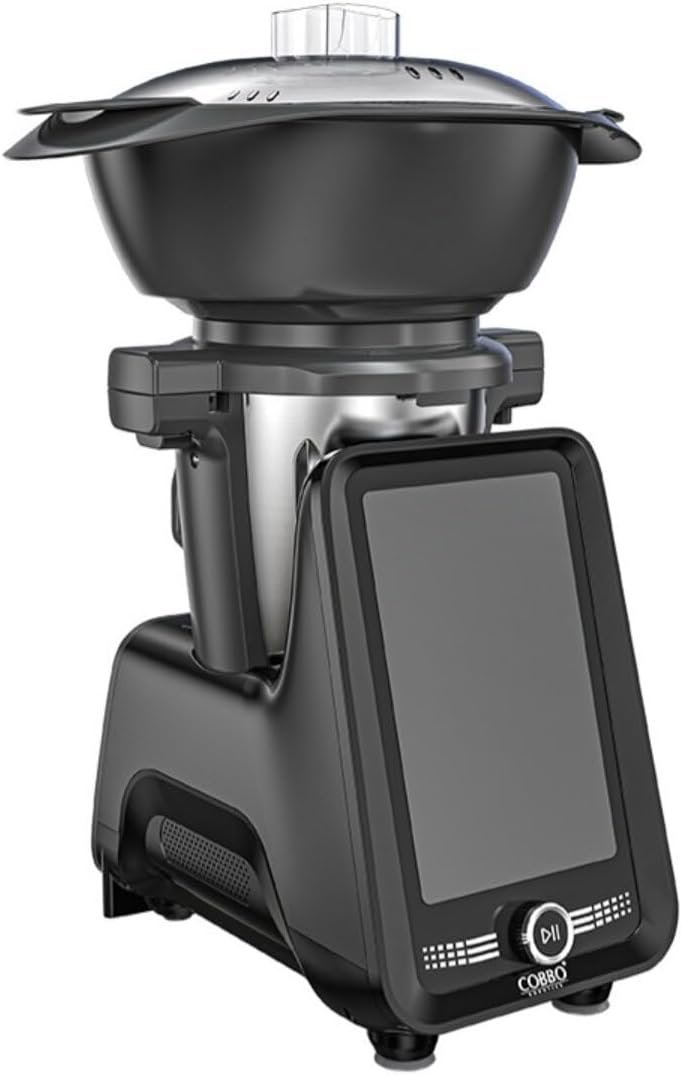 El procesador de alimentos common COBBO 7 SMART-I es un asistente versátil que te ayudará en cada tarea. Reemplazará con éxito más de 20 dispositivos diferentes, lo guiará paso a paso a través de más de 1000 recetas y, gracias a la función de asistente de voz, le informará sobre cada etapa posterior de la cocción.