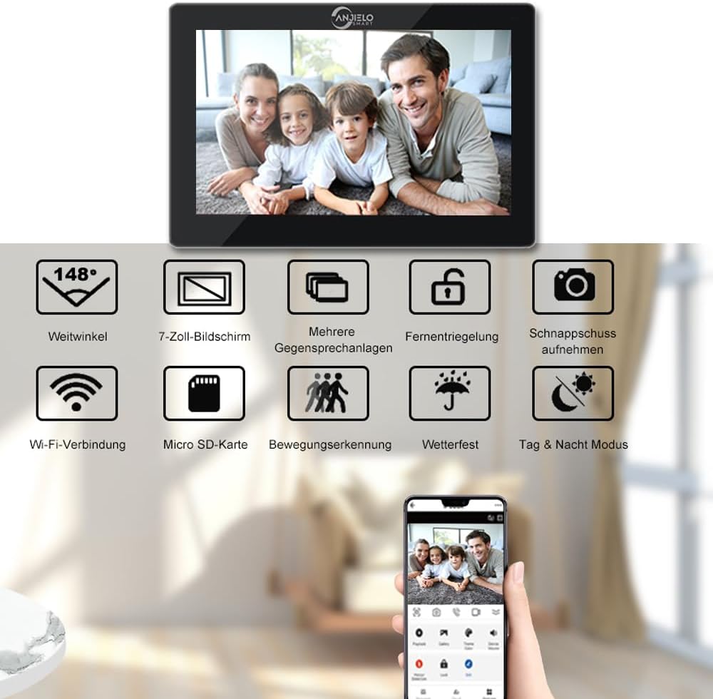 Monitor Táctil de 7 Pulgadas y Timbre de Puerta 1080p: Pantalla Táctil de 7 Pulgadas, Management Táctil, Manos Libres, appropriate con wifi para conectarse a Web. Timbre HD para exteriores con cubierta impermeable, sensor de infrarrojos integrado y cámara 1080p, Gran angular de 148 °, Visón nocturna, impermeable, un prío de polvo y vandalismo. PUEDE CONECTAR TODAS LAS CERRADURAS ELECTÓNNICAS DE 12 V (Candado no incluido).