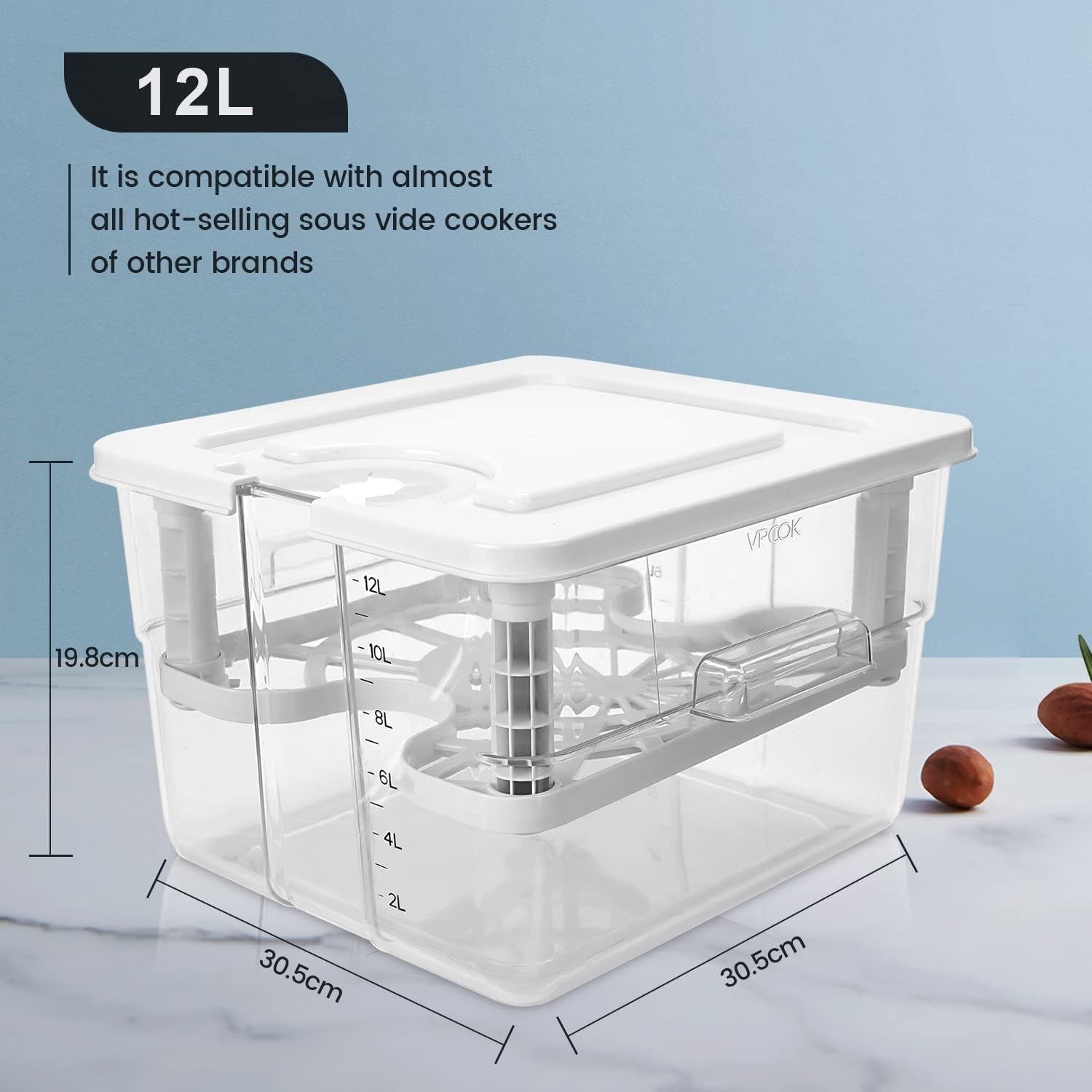 【(Diseño integrado) Diseño exclusivo, la versión mejor seleccionada después de muchas optimizaciones y pruebas, integra varias funciones, como contenedor, fijación de olla de cocción lenta a baja temperatura, fijación de alimentos, almacenamiento, and many others. No es necesario comprar otros accesorios, es adecuado para la mayoría de las marcas de máquinas sous vide, lo cual es conveniente y hermoso, y le brinda la mejor experiencia.