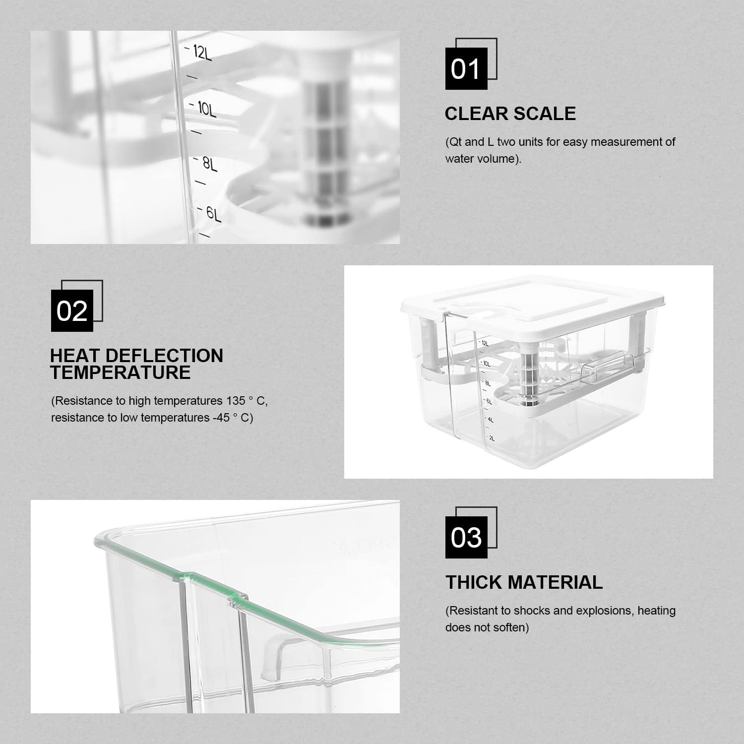 【Combinación perfecta】Estamos comprometidos a mejorar su experiencia gastronómica. Se recomienda utilizar este recipiente sous vide con nuestra máquina selladora al vacío y la máquina de cocción lenta a baja temperatura, que es más conveniente, profesional y deliciosa.