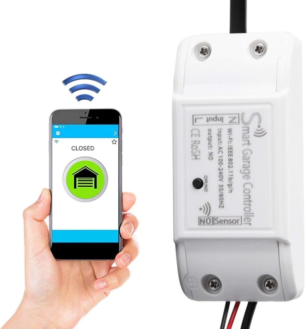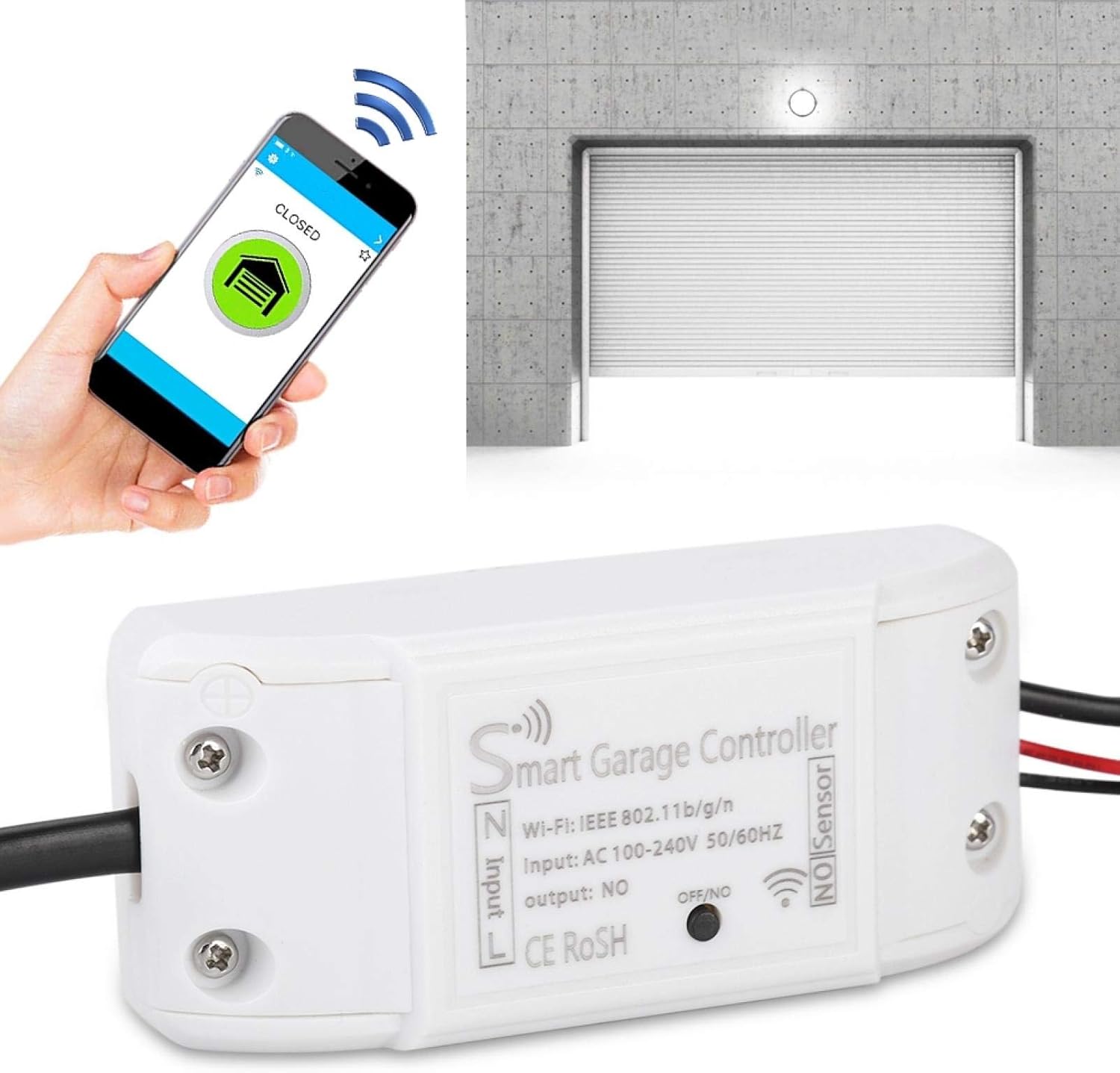 WI-FI Y ABRE-PUERTAS DE GARAJE: dispositivos inteligentes que combinan Wi-Fi y abridor de puertas de garaje. Controla y controla en cualquier momento, abre y cierra fácilmente la puerta del garaje. Apoye automáticamente el vehículo para controlar la puerta del garaje y puede verificar si la puerta del garaje está abierta en la APP sin bajar del automóvil.