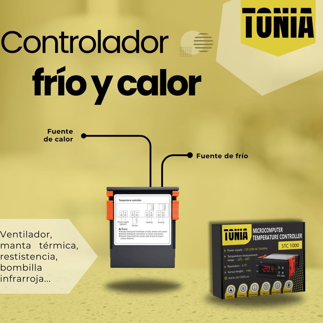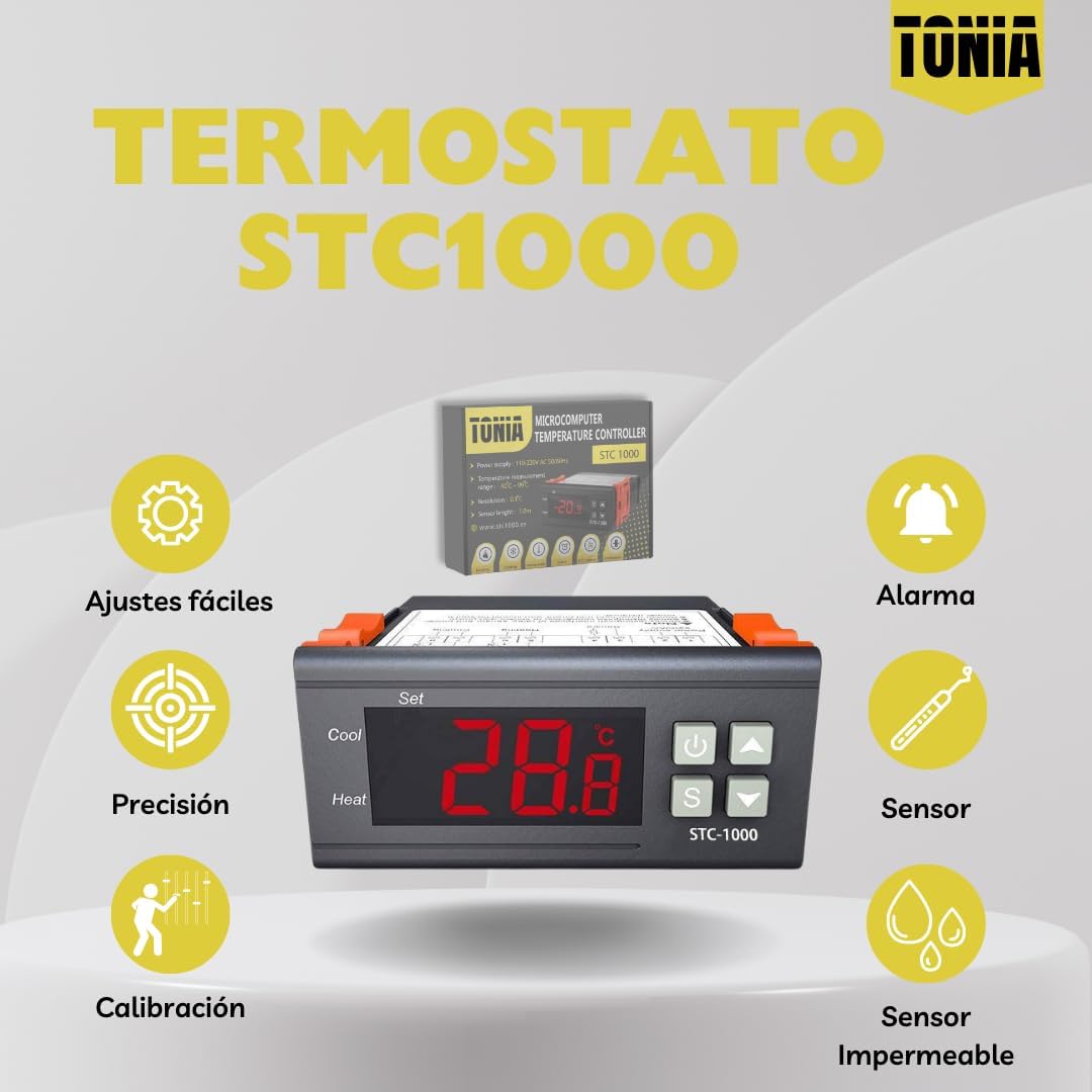 El termostato digital STC-1000 de Tonia es una solución compacta y eficiente para el management automático de temperatura en una variedad de aplicaciones. Best para su uso en refrigeradores, estufas, bombas, piscinas y ahumaderos, este controlador de temperatura asegura que sus equipos funcionen de manera óptima y segura.