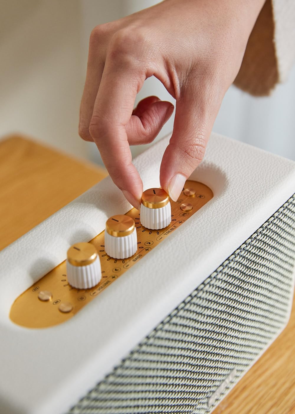 Altavoz portátil con diseño retro. Ambos tienen una potencia de 40W, entrada de 3,5mm y conexión con USB. La gran cuenta con Bluetooth 5.2, una batería de 3000mA/h que te permitirá escuchar hasta 5 horas de música ininterrumpida y un nivel de sonido de 90dB. El pequeño cuenta con Bluetooth 5.0, una batería de 2600mA/h te permitirá escuchar de 3 a 5 horas de música ininterrumpida y un nivel de sonido de 86dB. Los acabados de ambos están fabricados en madera y tienen detalles con efecto piel.