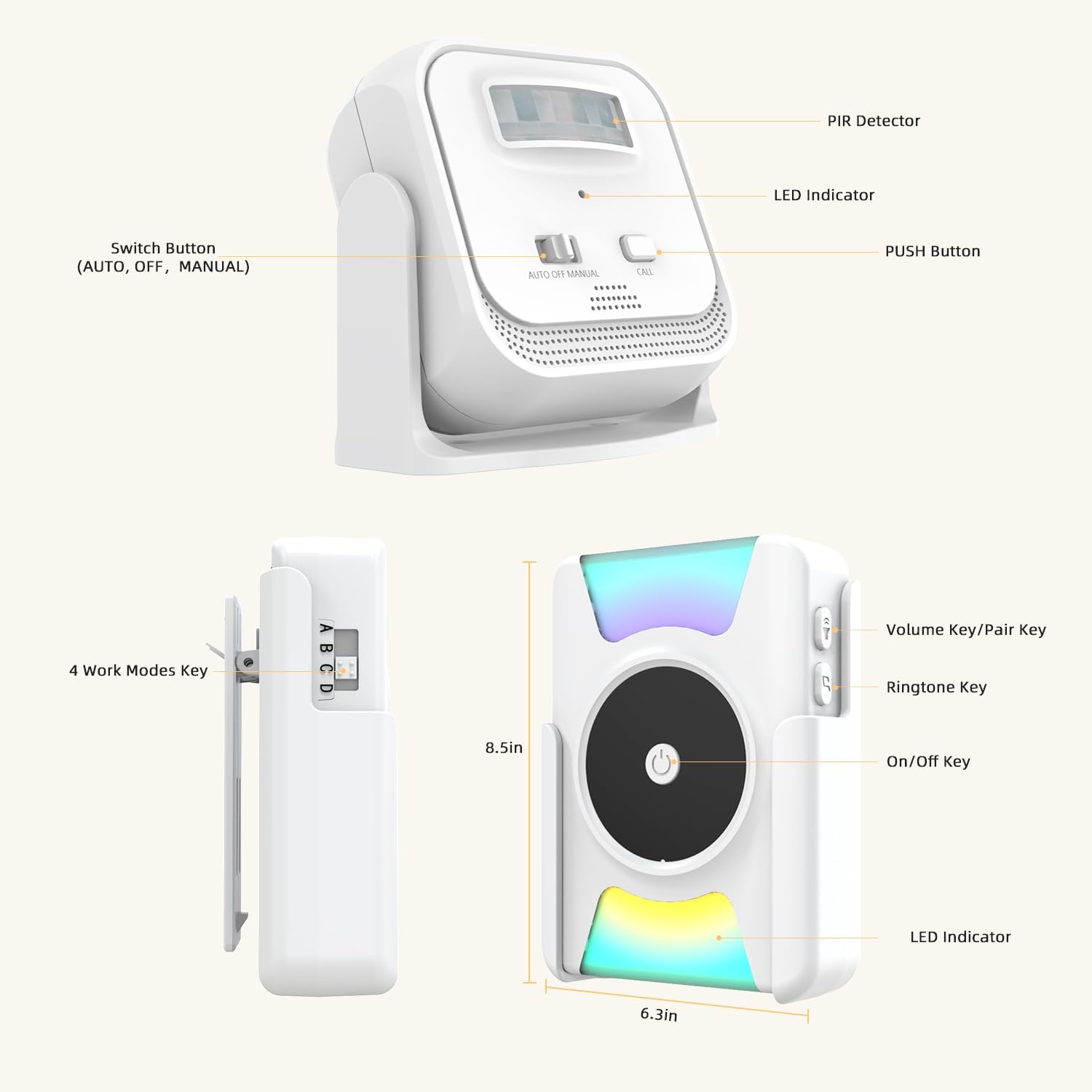 También es excelente para alertar a los propietarios de negocios que están trabajando en la parte trasera o fuera de la vista, o a los clientes que ingresan a la tienda minorista. Los componentes del timbre con sensor de movimiento inalámbrico vienen con una garantía limitada de por vida. El buscapersonas portátil se puede guardar en el bolsillo