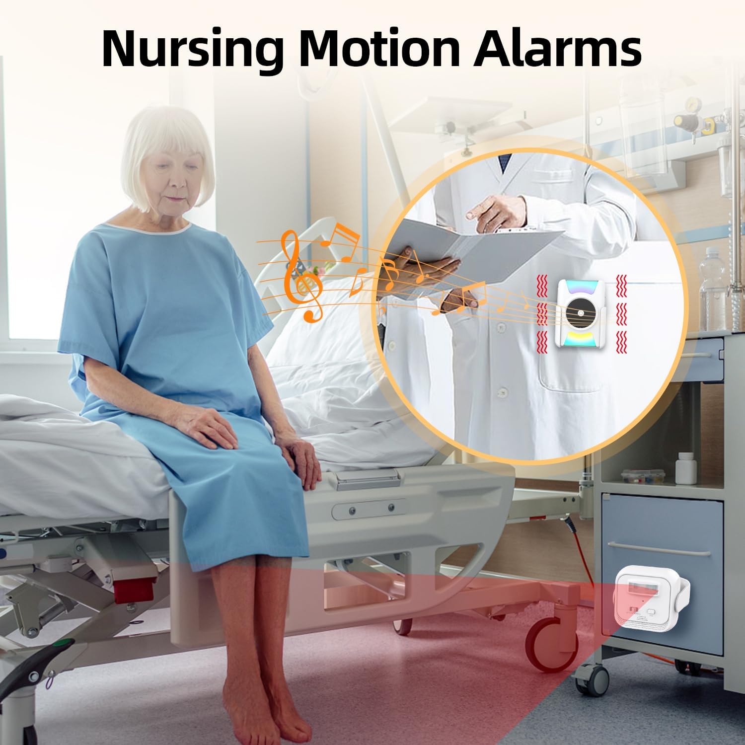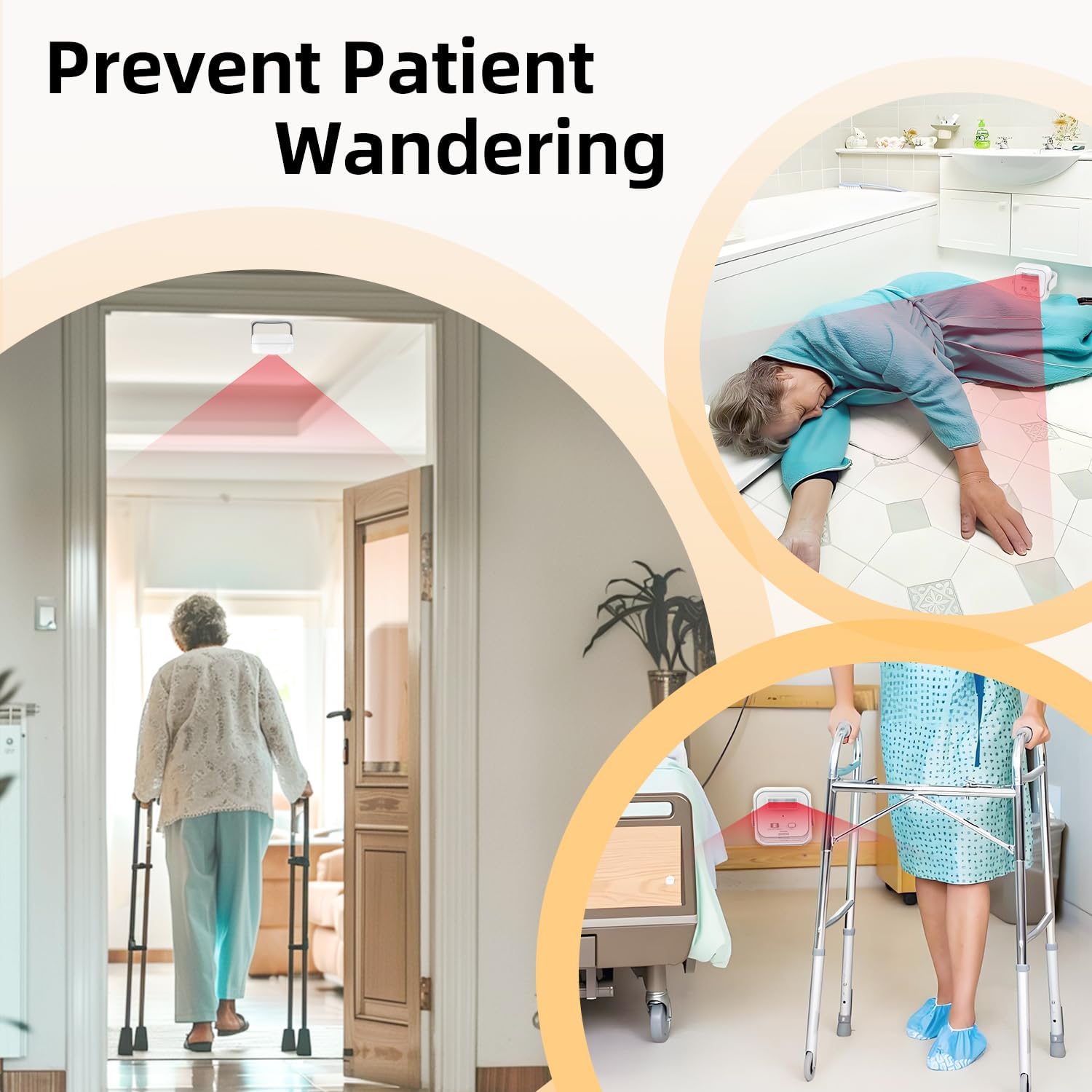 DAYTECH Alarma con sensor de movimiento para buscapersonas de cuidadores, alarma de cama y prevención de caídas para personas mayores con demencia, monitoreo de ancianos, 2 detectores de movimiento PIR y 1