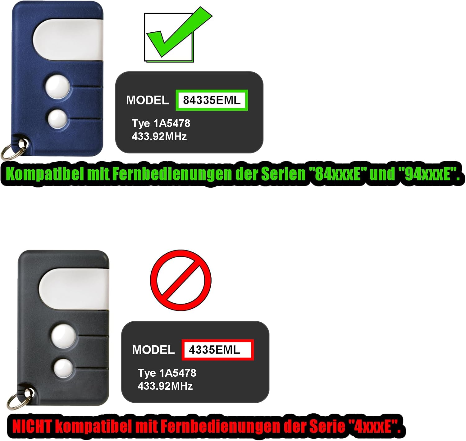 Mando a distancia para puerta de garaje de repuesto para Chamberlain / Motorlift / LiftMaster modelo «84xxxE» y «94xxxE» serie transmisor handbook.