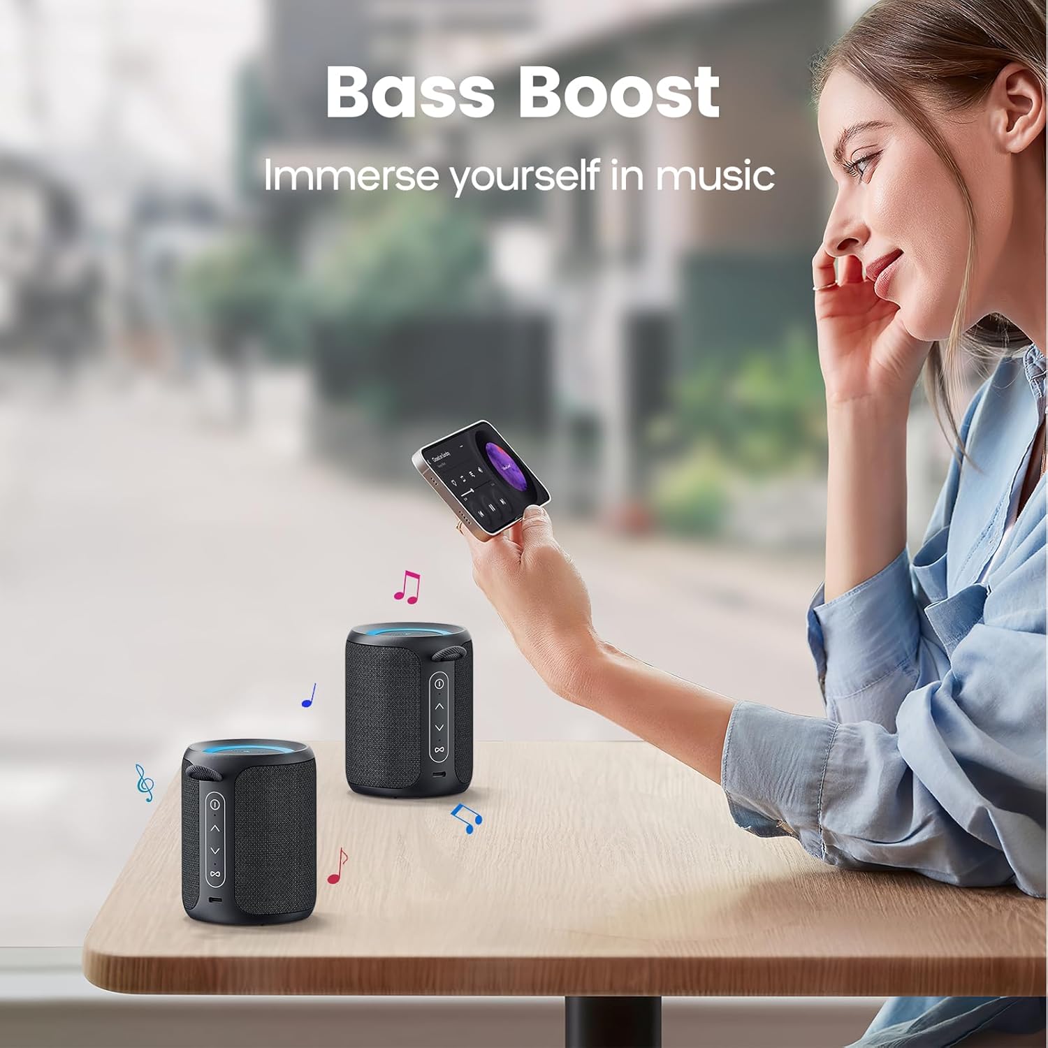 【Resistente al agua】Este altavoz Bluetooth es resistente al agua según el estándar IPX7. Puede usar estos altavoces bluetooth impermeables en la ducha, en la playa o en actividades acuáticas sin preocuparse por las condiciones climáticas y el entorno exterior. ¡Así que usted puede disfrutar de su música en cualquier momento y en cualquier lugar!