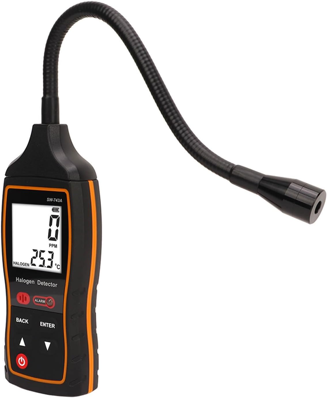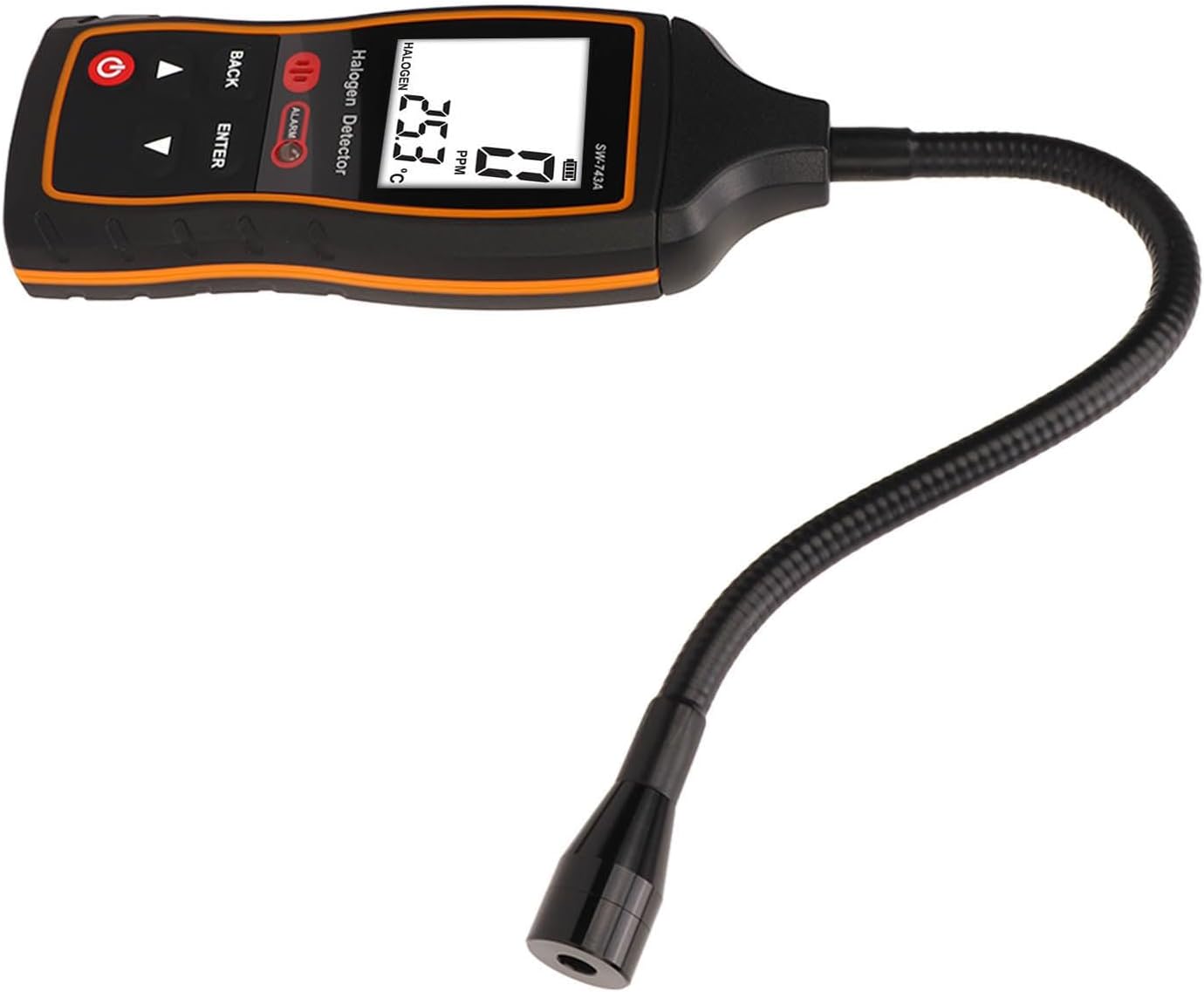 4. (Sonda versatile) Con una sonda de 26 cm de largo, este detector de gasoline halógeno permite doblarlo fácilmente a lo largo de tuberías o en espacios reducidos para detectar fugas de gasoline en cualquier dirección.