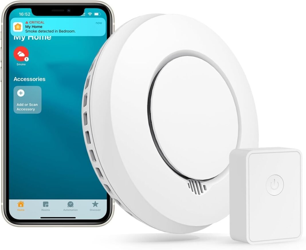 Detector de Meross de Humo Interconectado (Con Hub), Detector de Humo Inteligente, Appropriate Con Apple Homekit, Alexa y Google Residence, Alarma de Incendios Con Con Silencio y Autotest
