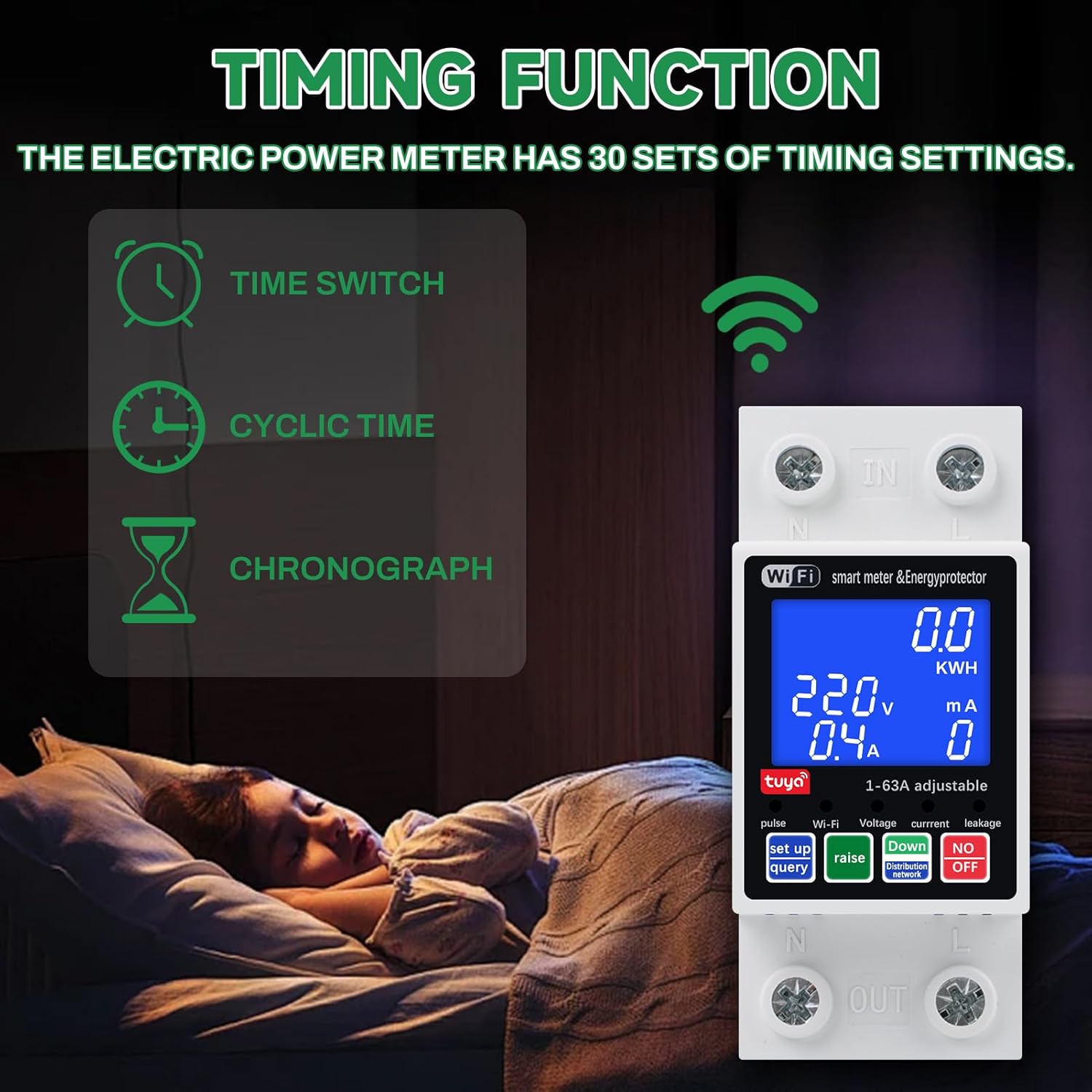 3. 【Función de temporización】: El Medidor de Energía Tiene 30 Conjuntos de Configuraciones de Temporización. Puede elegir el modo de temporización, el modo de cuenta regresiva, la temporización del interruptor de avance lento segúns sus necesidades diariáticas diariásas.cambia automáticamenta la corriente configuración el períado de tiempo a tavés de la aplicaciónn, y establecido y establecido. sobrecarga para diferentes períodos de tiempo.