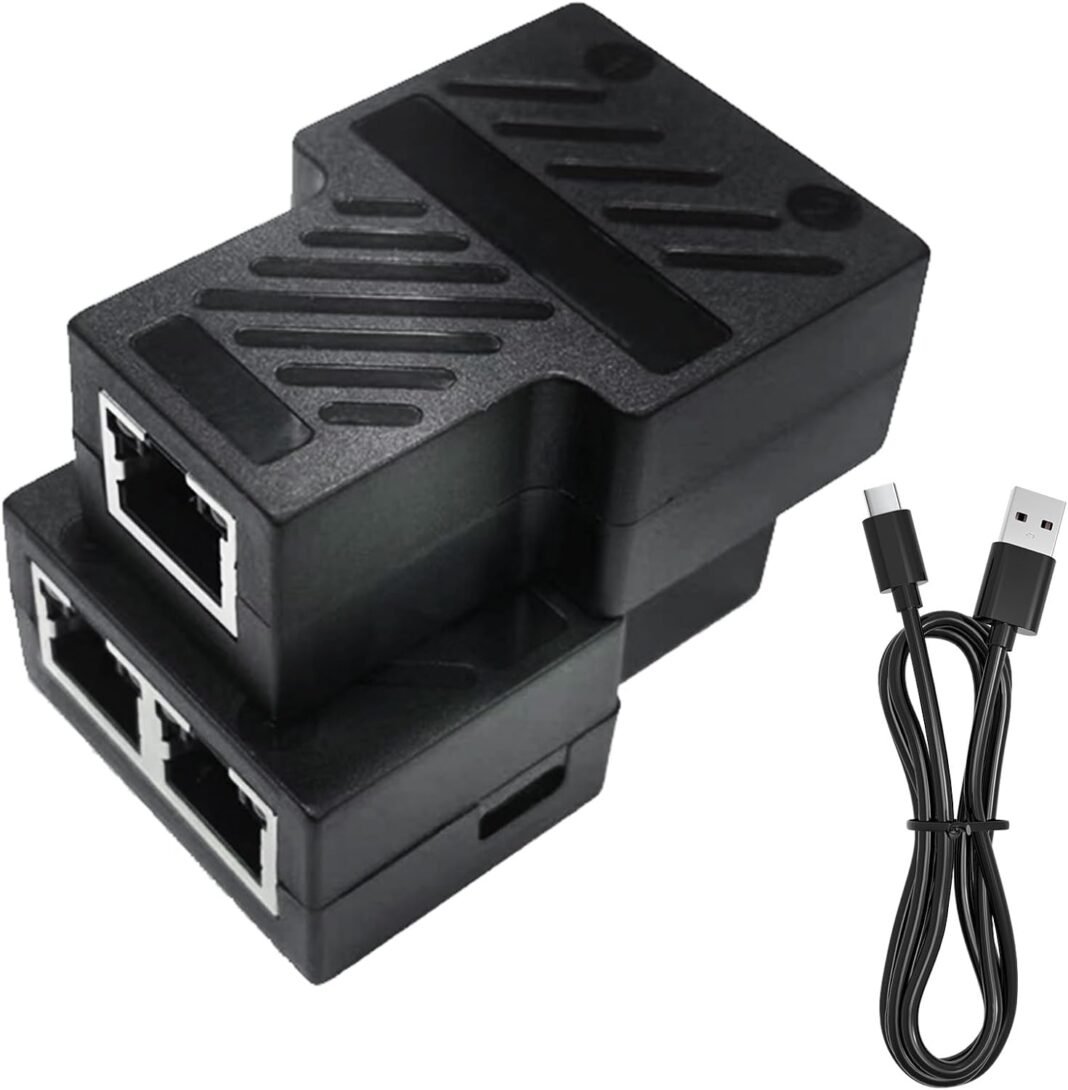 Divisor Ethernet 1 en 2 salidas: el divisor RJ45 se utiliza principalmente para resolver los problemas de conexión causados por cableado insuficiente, admite el uso de dos computadoras al mismo tiempo, compartiendo una línea de crimson, utilizando una fuente de alimentación USB.