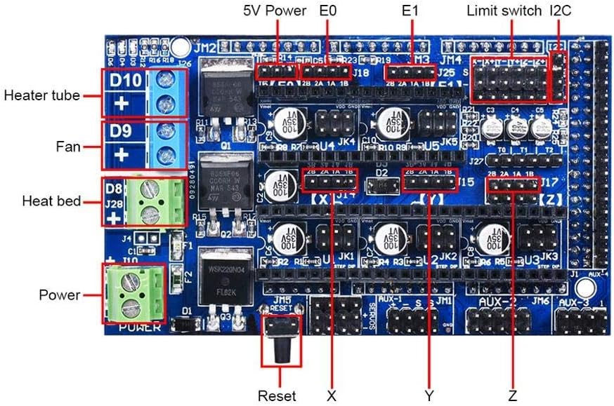 El Struture es casi igual que las Rampas 1.5, la diferencia es que las Rampas 1.6 tienen nuevos conectores de 2 pines, que son más simples y convenientes de conectar, tampoco se quemarán fácilmente, además, las Rampas 1.6 tienen un buen disipador de calor sobre el tubo MOS para dar una mejor función para disipar el calor.