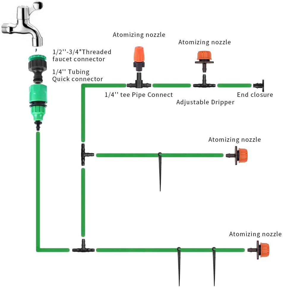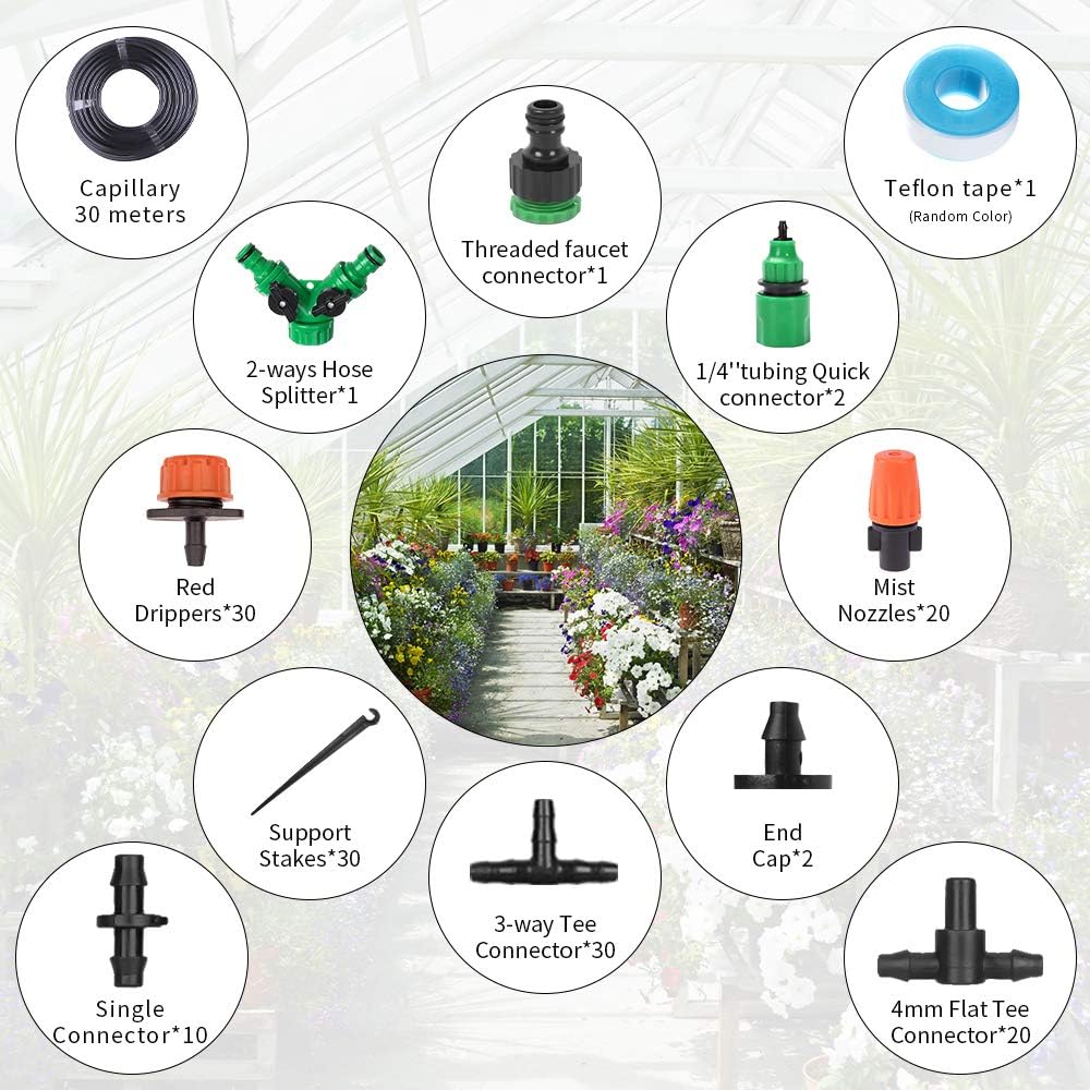 DONGQI Sistema de riego Jardín, 149 PCS Sistema de Riego por Goteo,30M Equipment Riego con Boquilla Ajustable Aspersor Pulverizador y Gotero Automático para Jardin Invernadero Césped Patio Terraza