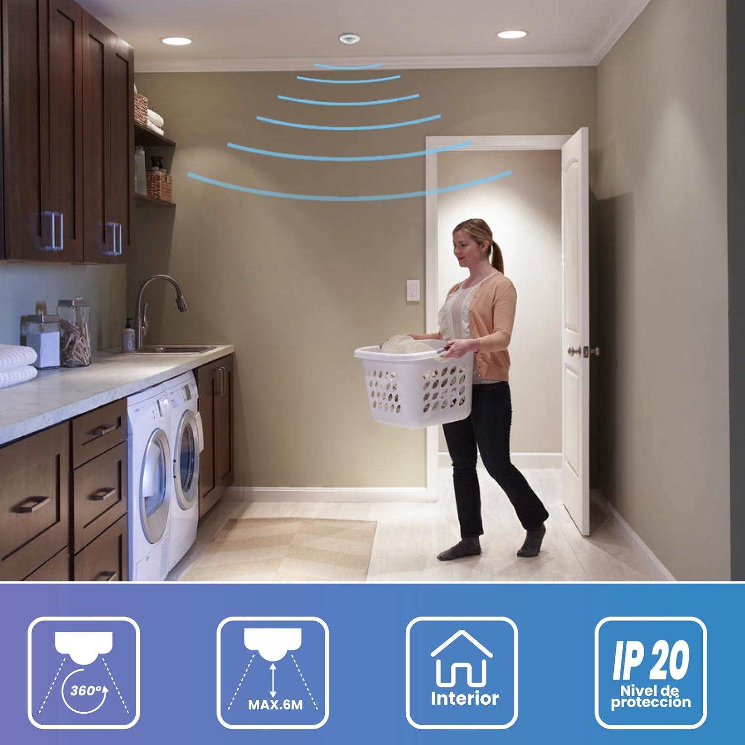 【Consejos】: El nivel de protección ip20, el detector de movimiento interno tiene una buena función inside a prueba de humedad y polvo, es un interruptor de inducción infrarroja de confianza.