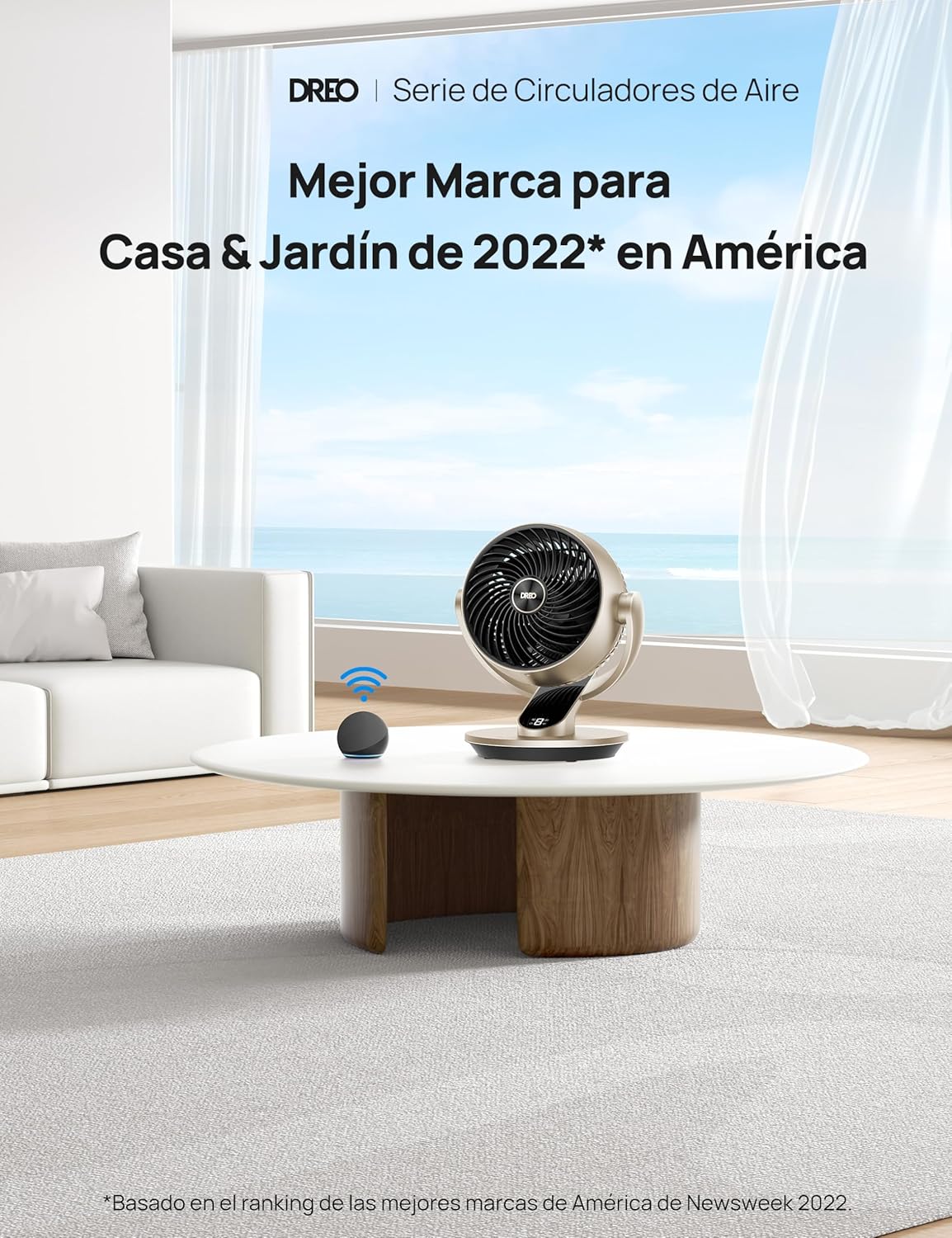 Circulación completa de aire en la habitación: Siente el movimiento del aire a tu alrededor con este ventilador circulador de aire inteligente. Impulsado por la tecnología WingBoost de Dreo, proporciona vientos de 21,3 metros de alcance para enfriar tu dormitorio, oficina y salas de estar.