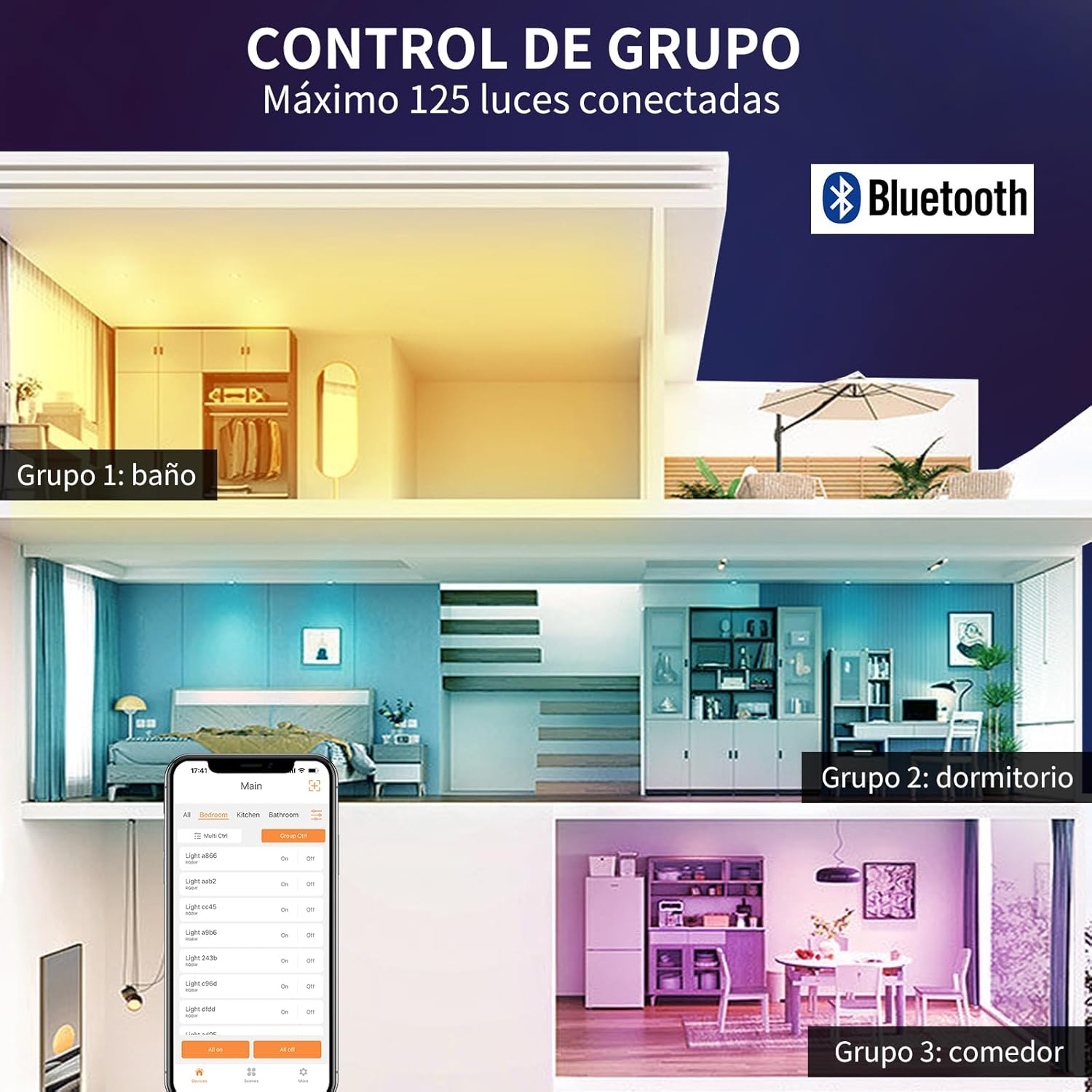 Controle Todas las Luces con una sola aplicacia, lo que reduzca la necesidad de múltiples aplicaciones paraferentes dispositivos.