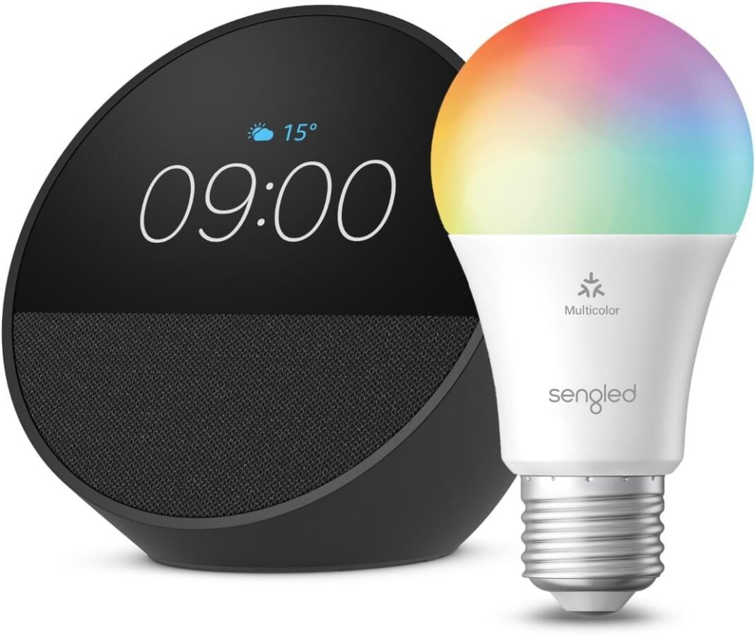 Echo Spot | Negro + Sengled Bombilla lideró a Inteligente (E27), Appropriate Con Alexa – Package de Inicio de Hogar Digital