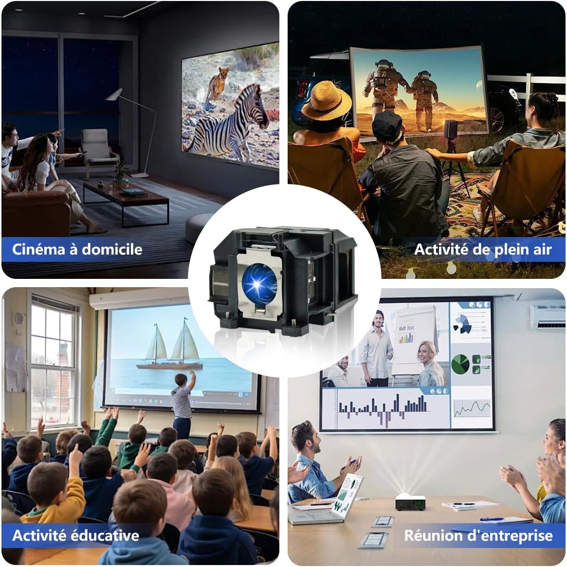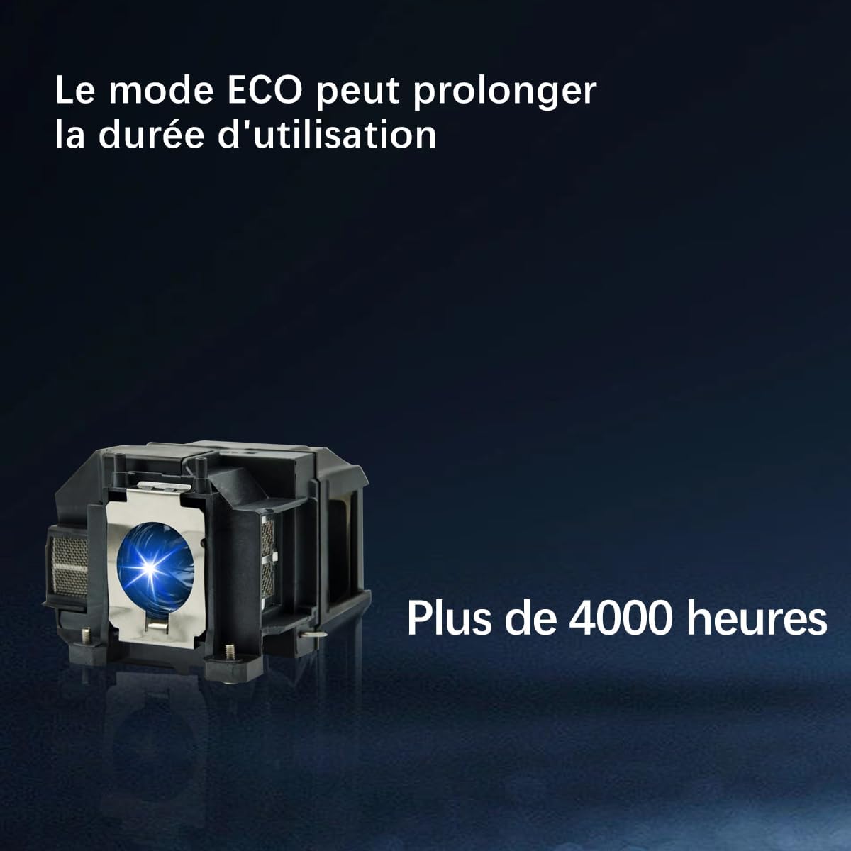 【Duración de la lámpara】: 3000 (regular) / 4200 (económica) horas, lámpara de larga duración muy adecuada para diferentes tipos de iluminación de proyección. Proporcione imágenes claras y brillantes para cine en casa, reuniones de negocios, iglesias, bodas, reuniones de amigos, actividades educativas, and many others.