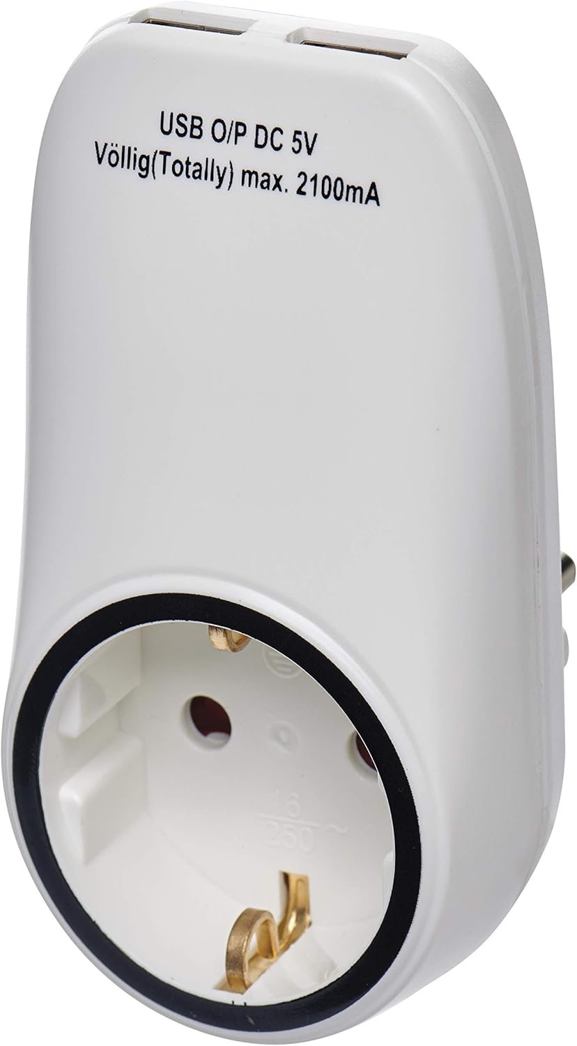 Enchufe de 250 V/16 A con 2 salidas USB: CC 5 V, corriente de salida máx. 2,1 A (whole), adecuado para teléfonos móviles, tabletas, relojes inteligentes, baterías externas o teléfonos inteligentes y otros dispositivos móviles