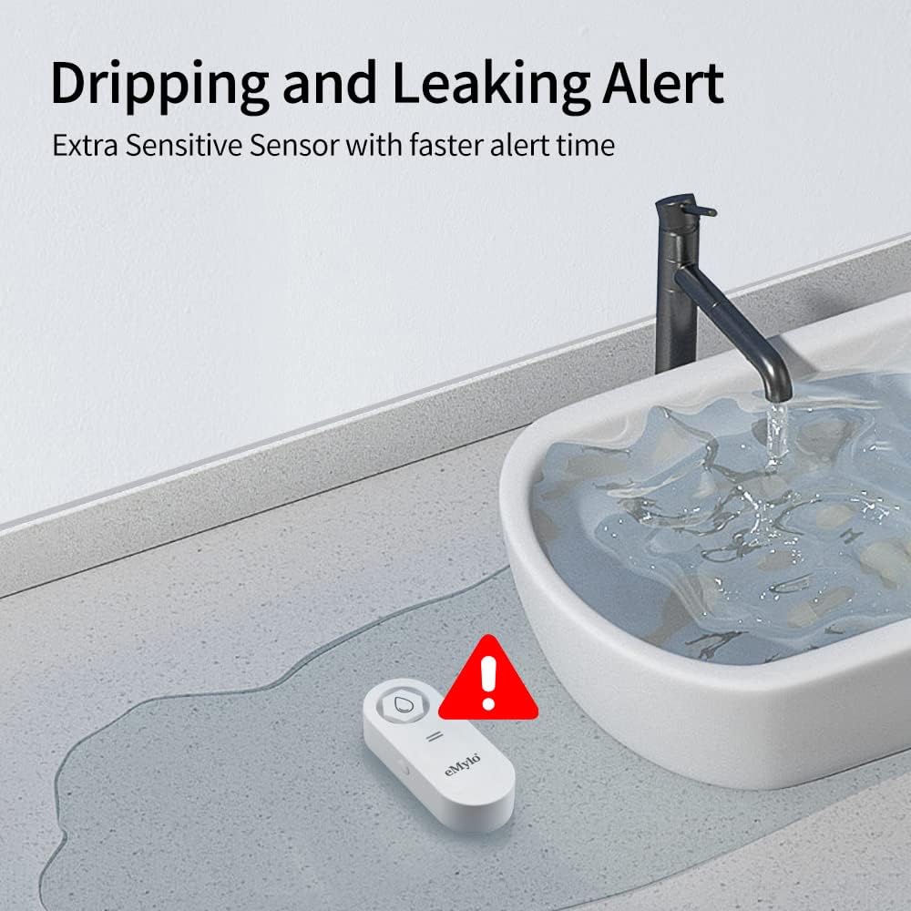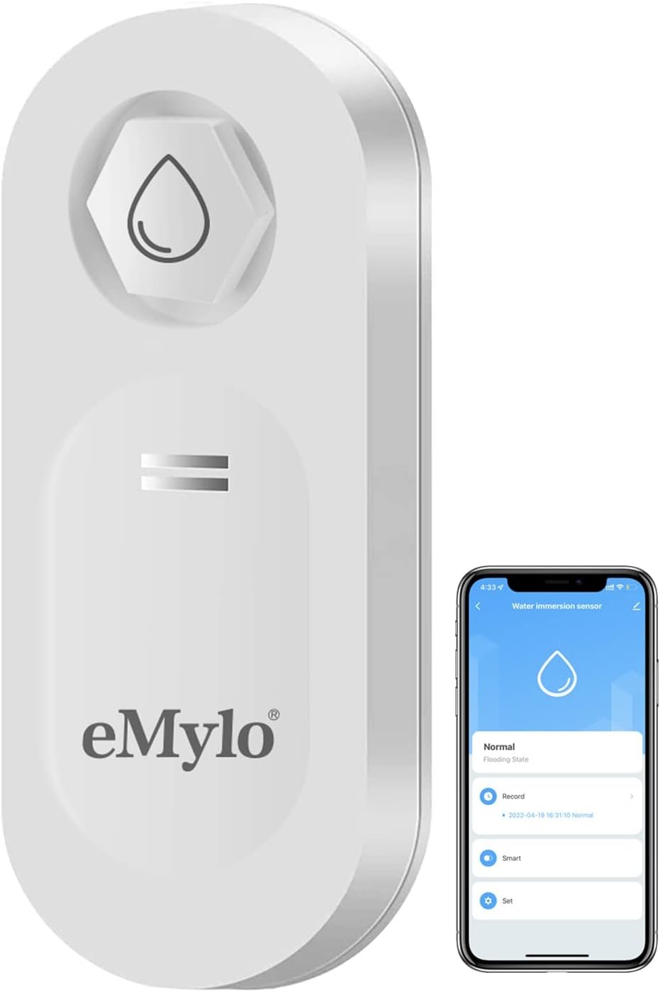 El detector de agua emylo WiFi puede prevenir eficazmente las inundaciones en su casa. El detector de alarma de fugas de agua utiliza un chip de alta sensibilidad y precisión, sólo necesita instalar el producto en el lugar donde puede ocurrir la fuga de agua, puede iniciar automáticamente la prueba.
