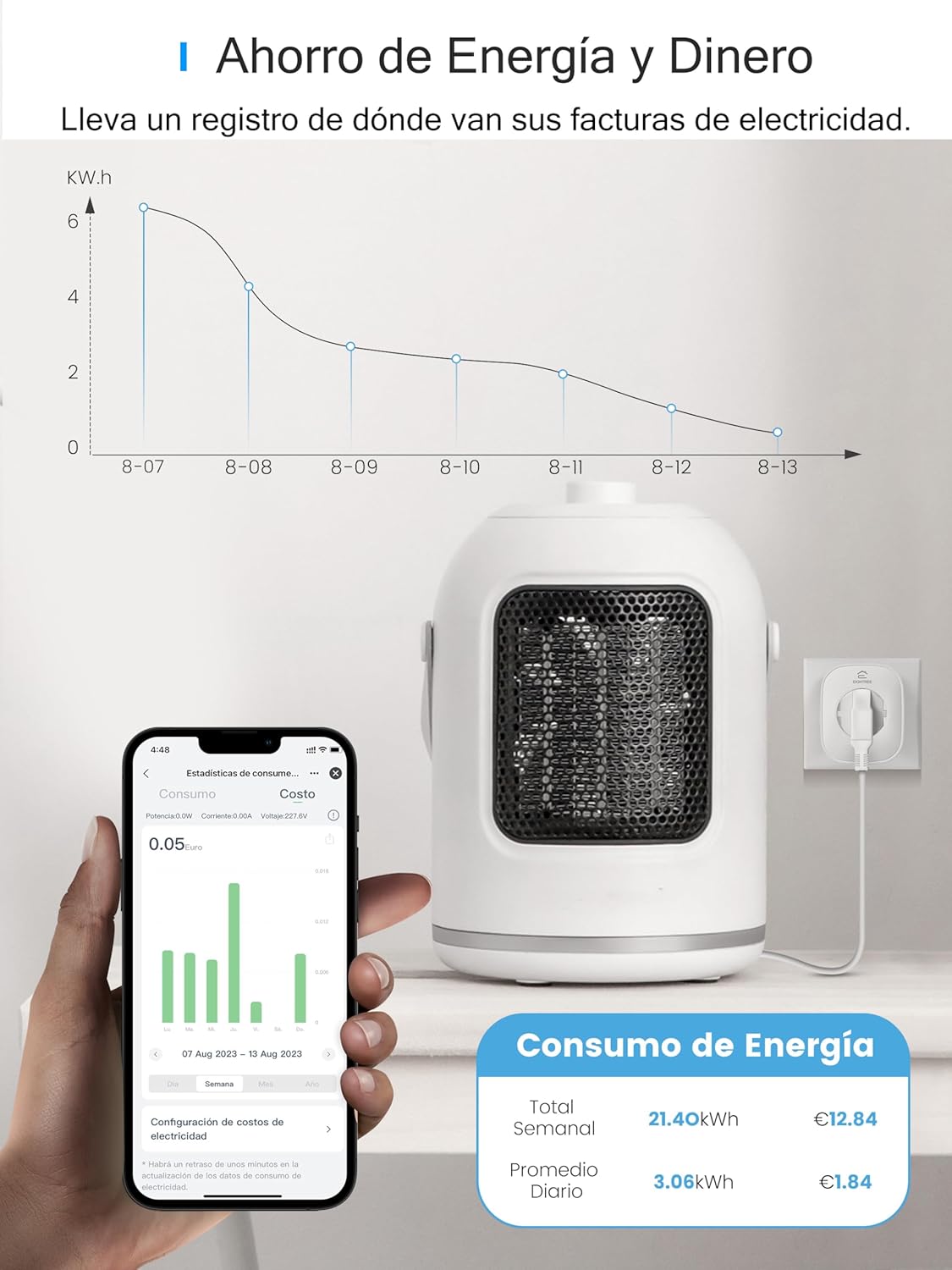 Monitorización del consumo eléctrico: Nuestros enchufes te ayudan a conocer el detalle detrás de tu factura de luz, donde has gastado cada céntimo, por lo que resulta una función extremadamente útil en la situación precise de disaster energética!