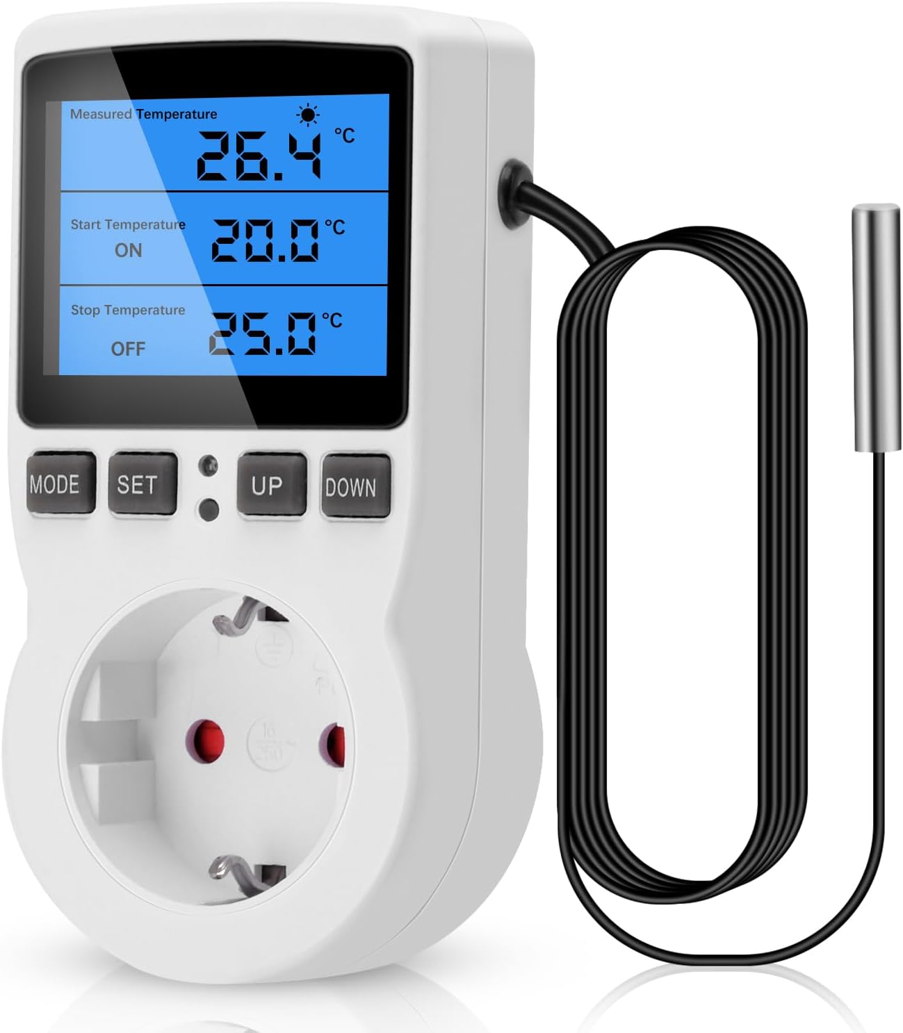 Enchufes del controlador de temperatura pantalla retroiluminada 230V enchufe del termostato Digital con Management de temperatura del Sensor