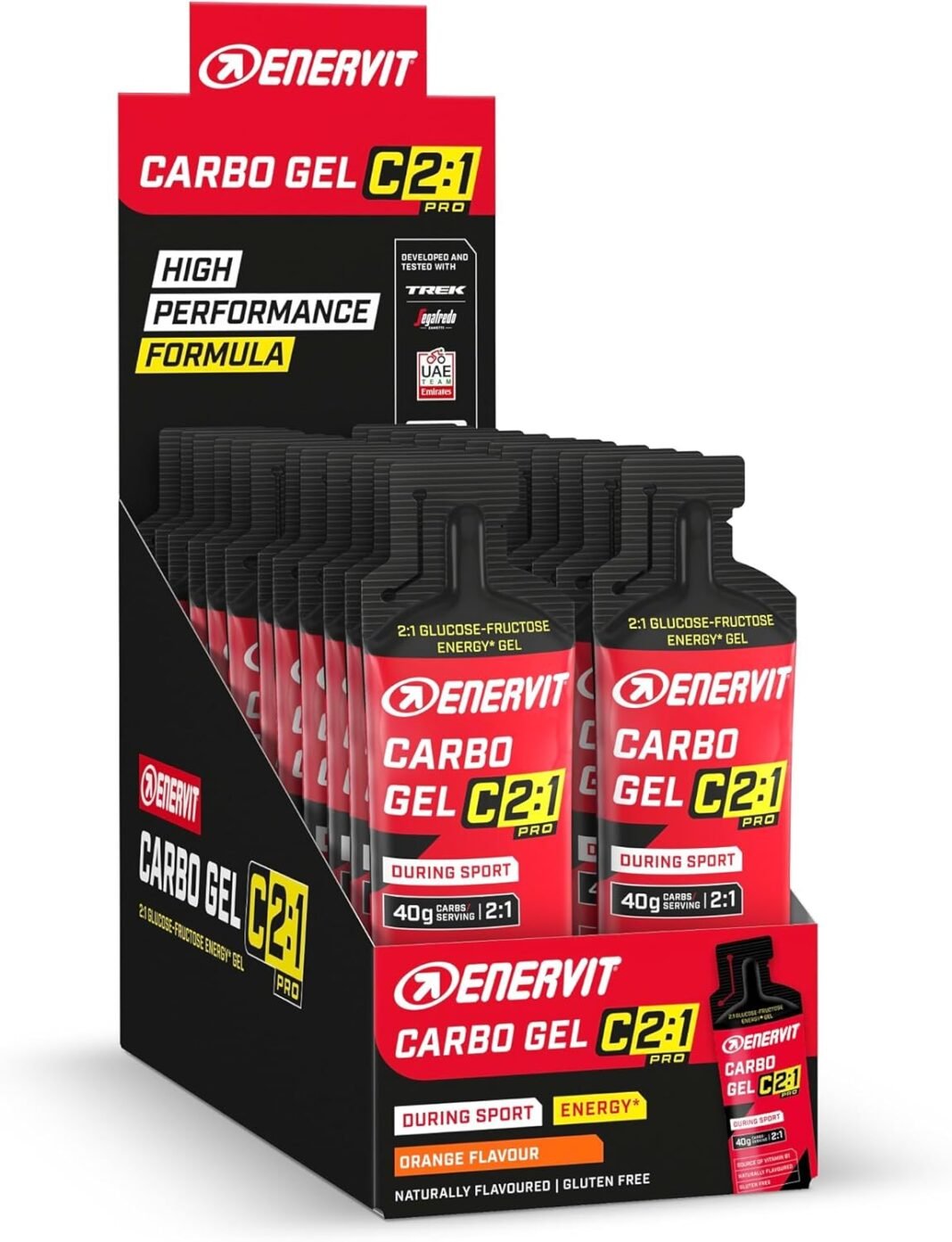 Gracias al gel enervit puedes maximizar el rendimiento en actividades de resistencia de larga duración y alta intensidad para desafiar tus límites. ESTE ES EL OBJETIVO DE LA NUEVA LÍNEA ENERVIT C2: 1PRO, Nacida de la Colaboraciónica entre Equipe Enervit y Los Mejores Equipos Uci World Tour, Trek Sgafredo y UAE Equipes, Emirates, PARA Satisfacer las Necesidadas Especeras a las Avanzas Avanzadas. CADA PRODUCTO CUENTA CON UNA FORMULACIA Se Minimiza El Riesgo de Estrés intestinal. Enervit Carbo Gel C2: 1Pro Naranja es El Exclusivo Gel Energético A Base de Maltodextrina y fructosa en Proporción 2: 1. Caracterizado por una surave sabor a un naranja y un baajo dulzor a pesar de su alta densidad energética, carbo gel c2: 1pro aporta 40g de carbohidratos. Cuando Se realizan actividadas de resistencia de alta intensidad, se necesitan productos eficaces y fáciles de Usar. Enervit carbo gel c2: 1pro naranja maximiza tu ingesta de carbohidratos y cut back el tiempo de uso. Porque para subir el listón, heno que esforsarsarse al máximo. ¿Quieres Aprovechar Al Máximo Su Potencial? Combínalo Contros Productos de la Gama Enervit C2: 1Pro para construyir tu propio sistema enervit nutricional personalizado.