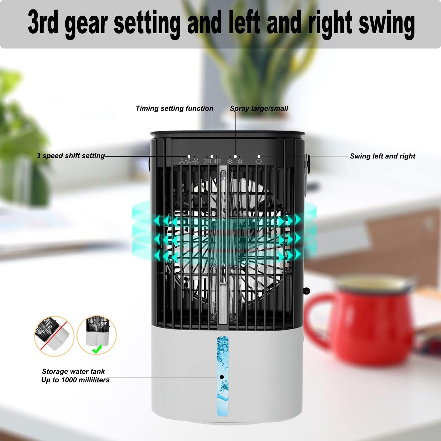 Potente Viento y Oscilación Automática: El Ventilador Enfriador de Aire Mini ConfiGión de Pantalla Tálil Tiene 3 Velocidades De Viento Ajustables y 2 RociAyores o Puede Oscar Auticamete 90 ° y la dirción del viento pude ajustarse según la regulacia hacia arriba o hacia abajo a tu gusto para adaptarse a tu comodidad private.