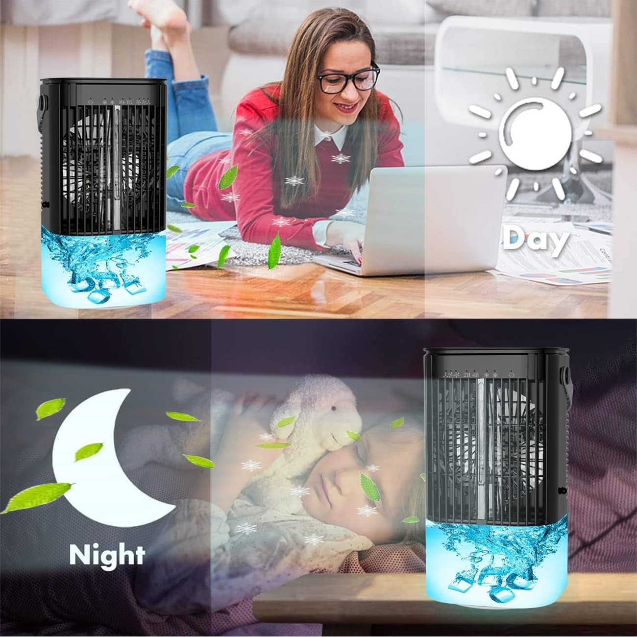 Aire Acondicionado Portátil 4 en 1: Nuestro Ventilador Enfriador de Aire es una combinación de Ventilador, Humidificador, Luz Nocturna y Aire Acondicionado. No Requiere Montaje, Simplemente conecta la Fuente de Alimentación para Encenderlo. Te Acompañaá Durante el Caluroso verano y Disfrutarás del aire frío Mientras protegidos tu piel del calor seco. Perfecto para tu hogar, dormitorio, oficina, and so on. es un regalo ideally suited para familia y amigos.