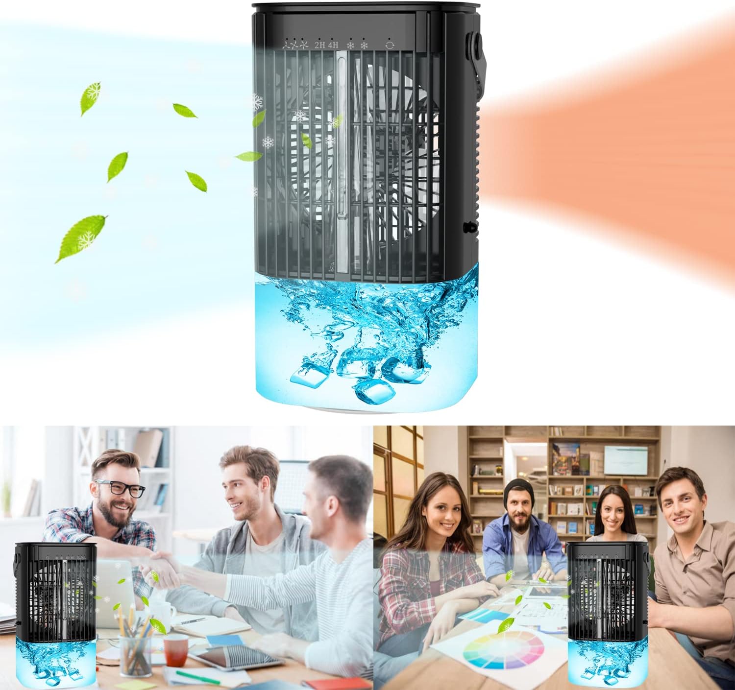 Enfriador de aire, aire acondicionado portátil, mini enfriador evaporativo, humidificador, ventilador, 3 velocidades de ventilador, aire acondicionado private, para el hogar y la oficina (negro) Aire acondicionado portátil 4 en 1: nuestro enfriador de aire con ventilador vaporizador es una Combinacia de Ventilador, Humidificador, Luz Nocturna y Aire Acondicionado. No se requiene en la asamblAJE, solo conecta el adaptador de corriente para encenderlo. Te Acompañaá Durante el Verano Caluroso y Disfrutará del aire frío Mientras protegido tu piel del calor seco. Perfecto para tu hogar, dormitorio, oficina, and so on. en verano, es un regalo ideally suited para familiarizados y amigos. TEMPORIZADOR DE AHORRO DE ENERGIA: NUESTRO AIRE ACONDICADO PORTÁL TENE UNA FUNCIÓN DE SINCRONIZACIÓN DE 1-8H, PUEDE CONFIGUARLO AL TIEMPO DE FUNCIONAMENTO QUE DESEE. El Ventilador de Enfriamiento Tiene una Fuerte Potencia eólae y una Velocidad de Enfriamiento rápida, Pero la Potencia es de Solo 10 W y El Consumo de Energía es Bajo. Puede Aydarlo A Ahorrar al Menos el 95% de Las Facturas de Electricidad y Ahorrar Altos Costos de Instalacia para el Aire Acondicadado.