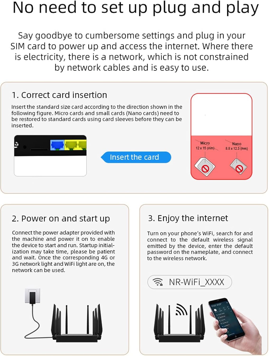 Plug and Play: El Enrutador 5G Con Ranura para Tarjeta Sim Brinda Conectividad Perfecta Dondequiera que Vaya. Simplement Congreso y Juegue para Mantenerse Conectado, Para Hogares, Oficinas, Viajes en VehÍculos Recreatros, Campamentos y Pequeñas Empresas.