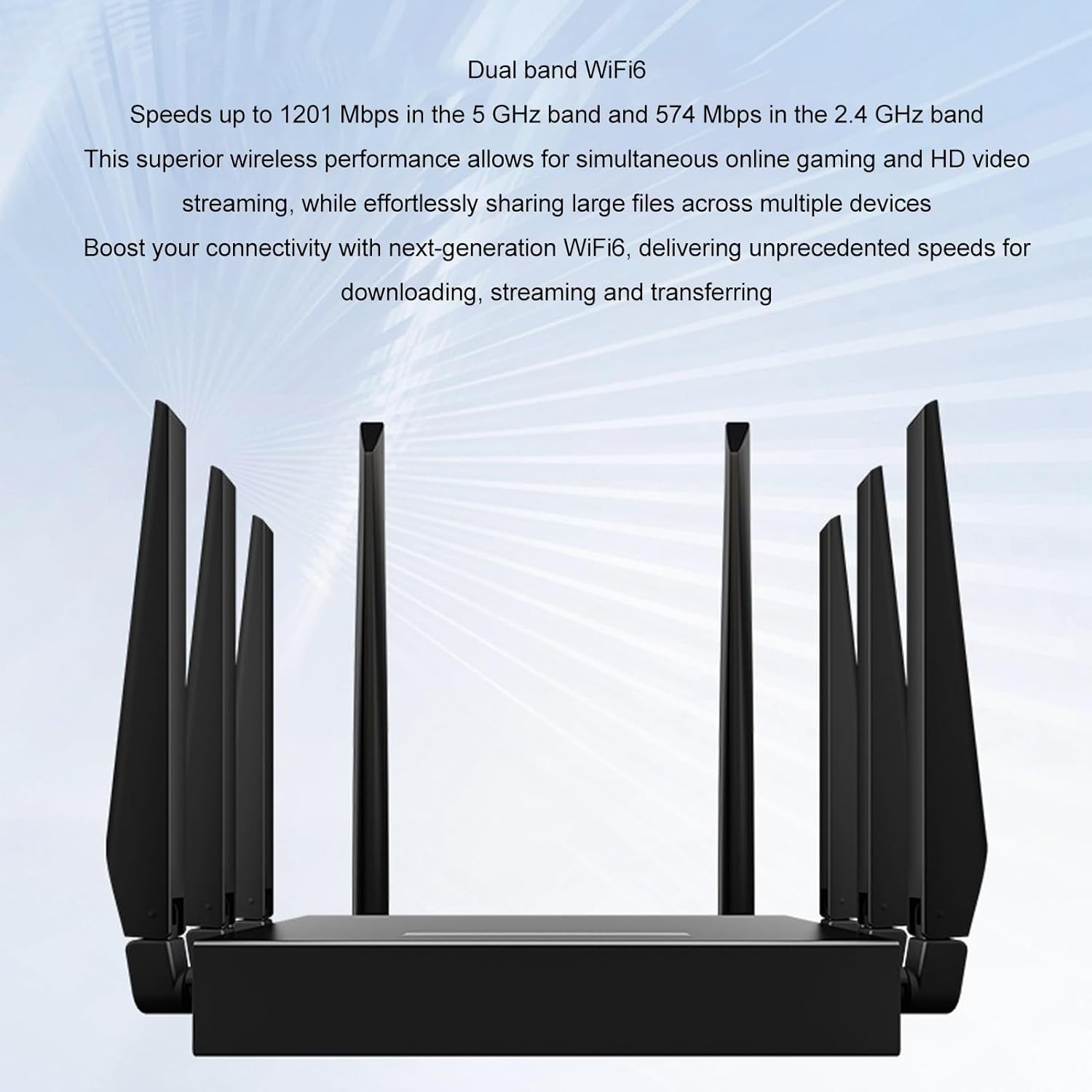 8 Antenas: incluye 8 Antenas Celulares de Banda Ancha de Alta Ganancia para una una Excelente Recepción de Señal. Mejore su conectividad con wifi6 de próxima generaciód que de las velocidades de recurso sin precedentes para descargar, transmitir y cargar.
