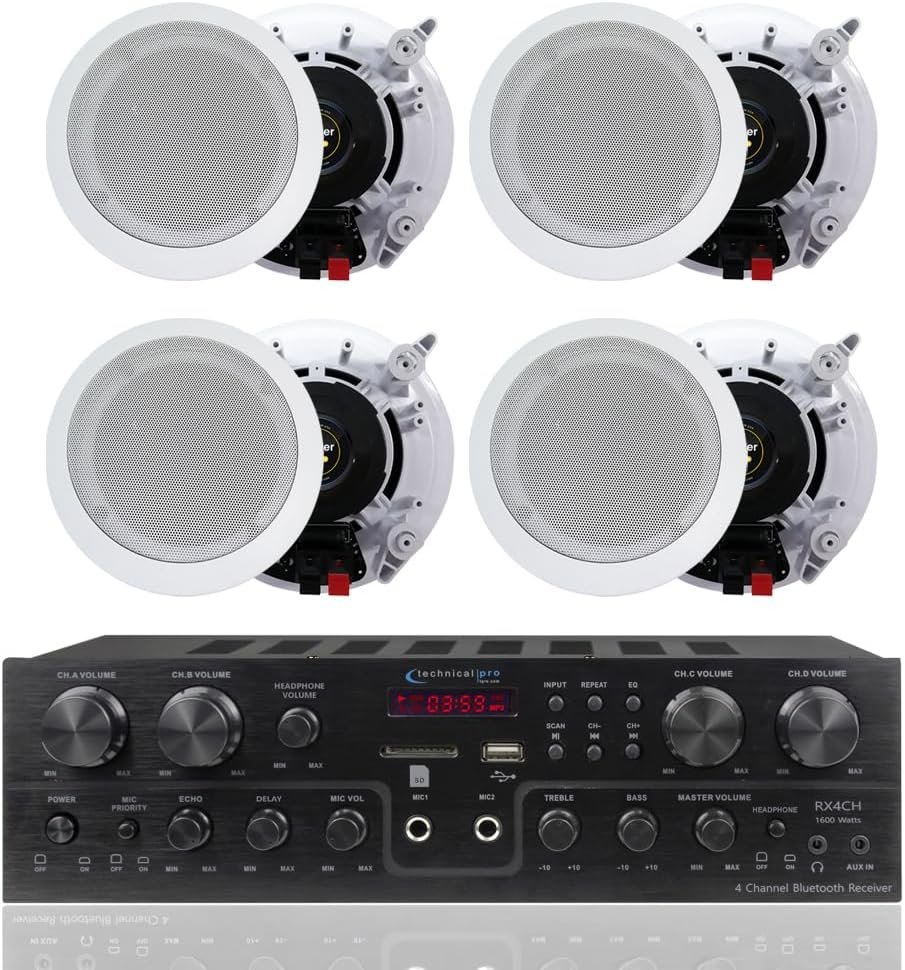 El Sistema de Altavoces derece Sonido Estéreo A Cualquier Hábitacia de Tu Hogar U Oficina Sin Saturar El Espacio en El Suelo. Este par de altavoces de 5.25 pulgadas se puede utilizar para aplicaciones en pared y techo, ya se. Perfecto para instalaciones personalizadas, Los altavoces cuentan con tweeters de cúpula de polímero, la capacidad de la intensidad de manejo de energía, bobinas de voz de alta temperatura y tasas de respuesta de alta eficiencia, todo paraproducir undido más completo y rico Práctica Terminales de Altavoz Que Permiten Una Conexión ráspida y Sen Aclicaciones. El Sistema incluye plantilla recortada para una fácil instalación. Logra un Rendimiento de Sonido de Amplio Rango y Añade Audio A Cualquier Hábitacia con los Sistemas de Altavoces.