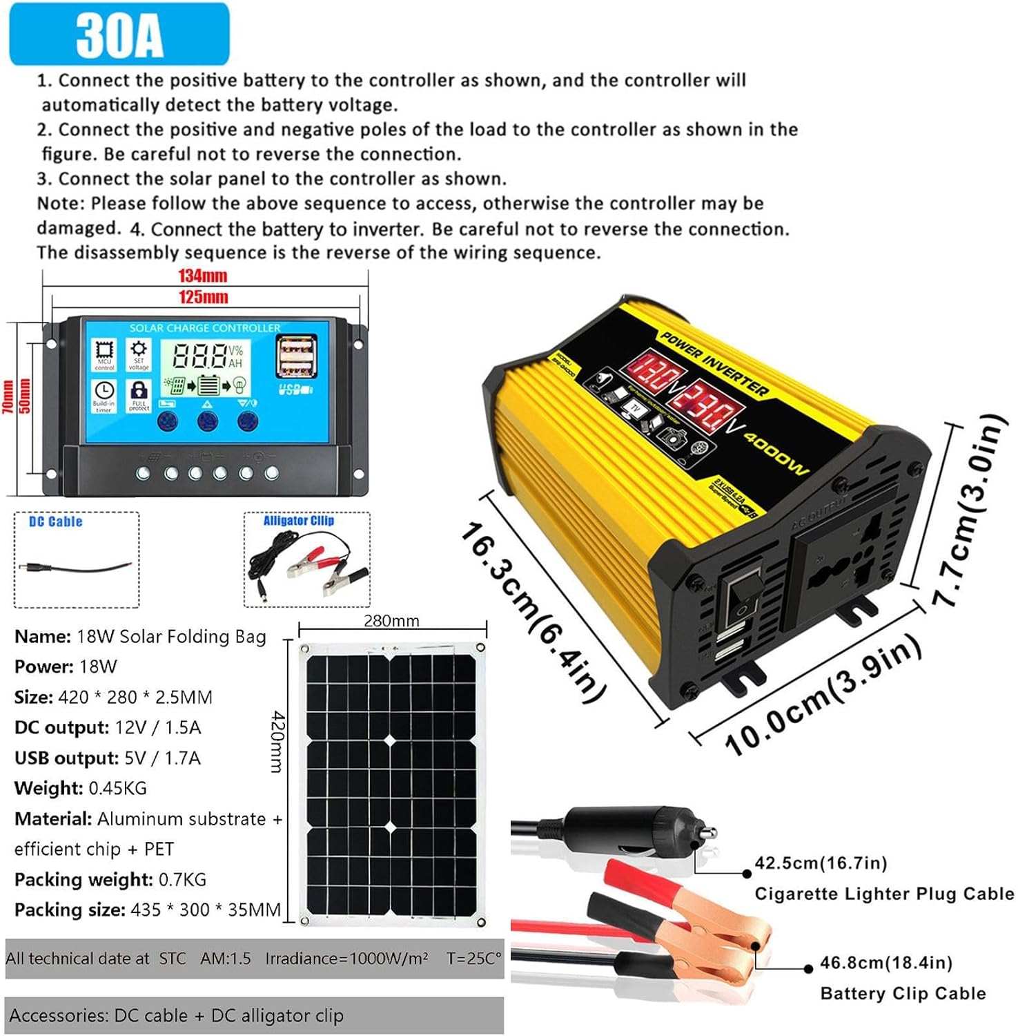 300 W) Diseñado Con Un Inversor de Energía de 300 W, El de Panel Photo voltaic es Adecuado para Convertir 12 V CC A 110 V CA O 220 V CA Según El Modelo Que Elija, Es Conveniente de Usar y Satisface SUSidades de Electricidad Enferentes.