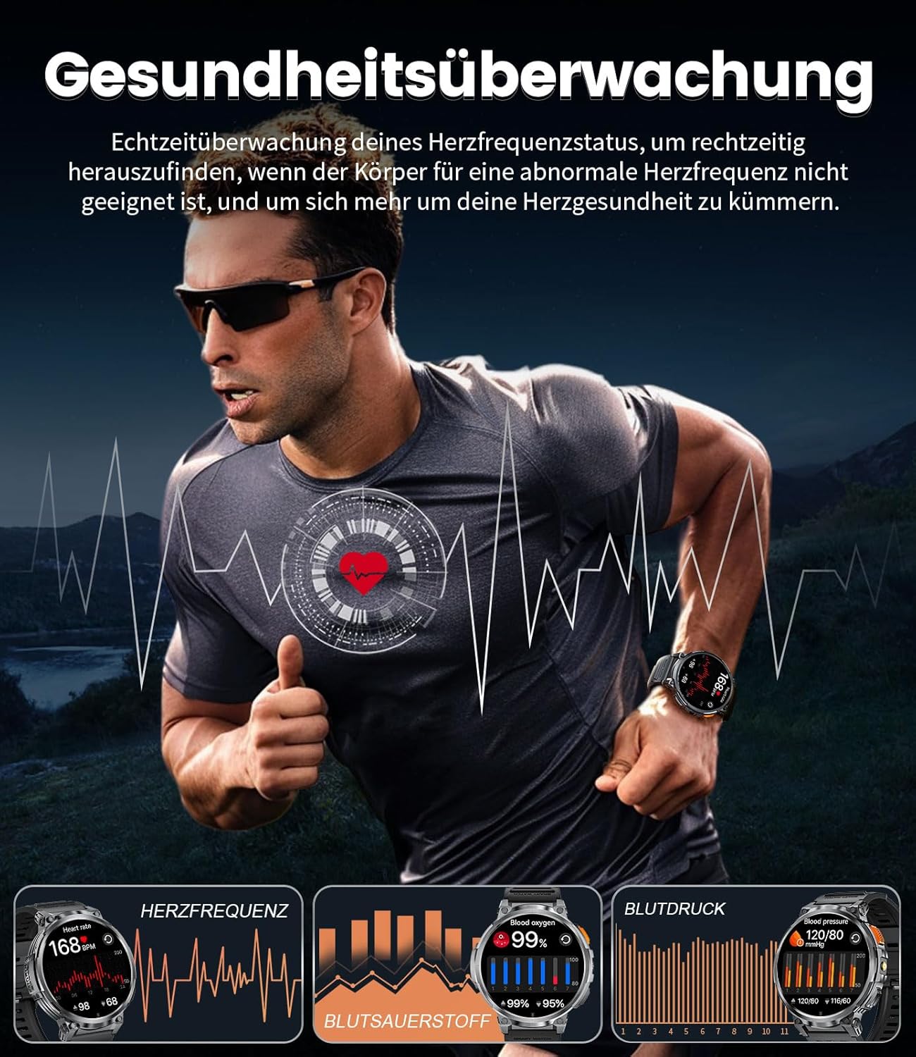 🏅 Pantalla Grande, Gran Visualización – Con su pantalla Extremely HD de 1,85 pulgadas totalmente táctil, el smartwatch ESFOE para hombre ofrece la pantalla redonda más grande del mercado. La pantalla IPS de alta resolución con 360 x 360 píxeles y una escala de colores RGB del 100% garantiza colores vivos y detalles nítidos, incluso con luz photo voltaic o poca luz, y es especialmente adecuada para usuarios con problemas de visión. La gran pantalla permite un manejo sencillo, incluso para hombres con brazos anchos y dedos grandes. El elegante diseño metálico sin marco complementa a la perfección la clásica esfera redonda y combina funcionalidad con estilo moderno.